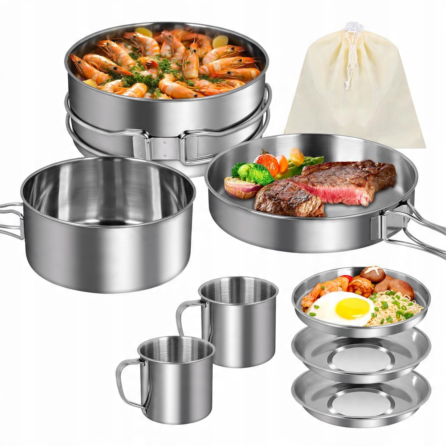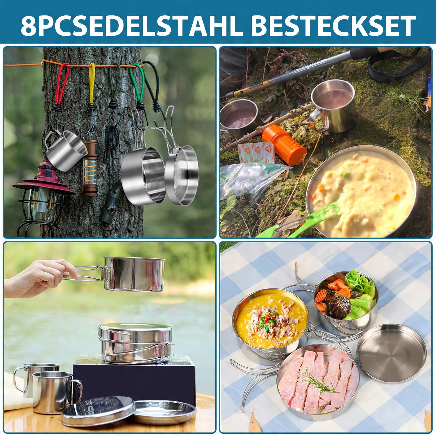 Сталевий обідній набір кемпінгових суден 8 ел.
