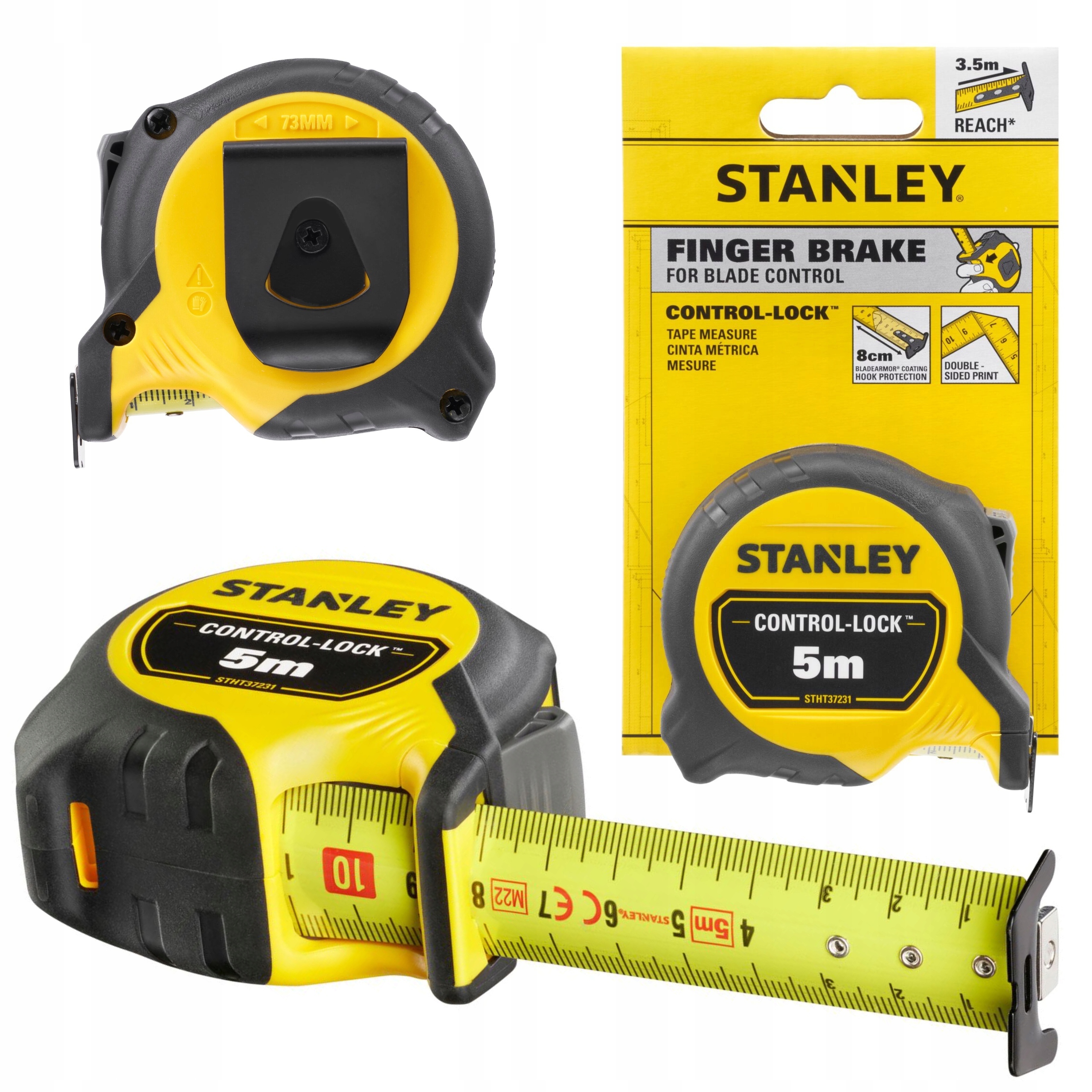 - Світло-компактний захід Stanley® Control-Lock ™ 5m (шириною 25 мм) був розроблений ергономічним способом для забезпечення комфортного зчеплення та комфортного використання, забезпечуючи при цьому професійну довговічність та високу дальність. Захід оснащений інтегрованим гальмом, що надає користувачам максимальний контроль та захист при ковзанні та вставці стрічки. Стрічка шириною 25 мм і вражаючий діапазон 3,5 метра. Перші вісім сантиметрів стрічки були покриті міцним покриттям Blademor®, що забезпечує оптимальну стійкість до стирання та перелому. Крім того, стрічка має подвійний друк, який дозволяє швидко та прості вимірювання над головою. Stanley® Control-Lock ™ 5M стрічка оснащена знімним магнітом та багатофункціональним гачком для кращого зчеплення та найвищої універсальності для використання на всіх поверхнях. Яскраво -жовта стрічка Стенлі забезпечує кращу видимість у більшості умов на будівельному майданчику.