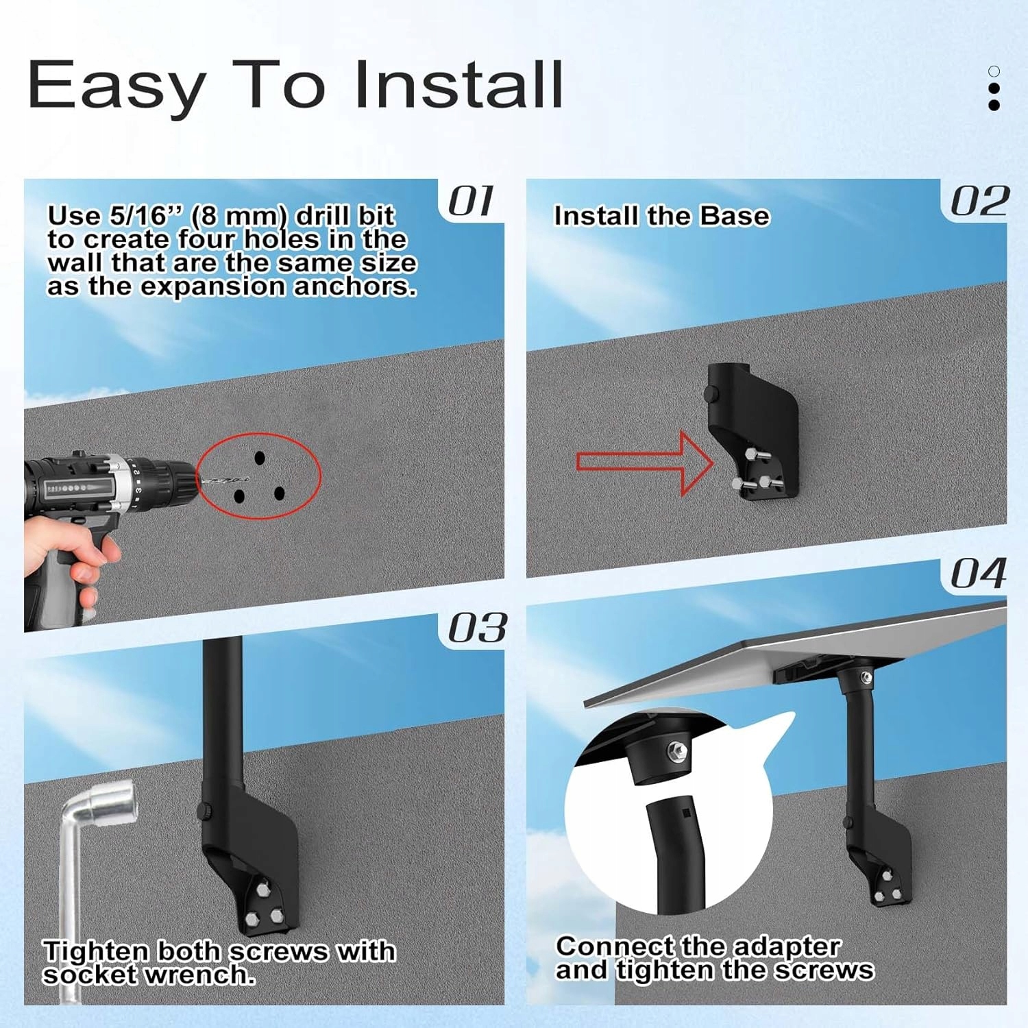 Сумісний зі стандартним Gen 3. Оснащений гвинтами для дерев’яних дахів, він забезпечує легку установку. Інструкції та відеозаписи поетапно, а суцільна конструкція гарантує стабільність навіть у складних погодних умовах. Ідеально підходить для дахів і стін, з можливістю регулювання положення для оптимального сигналу.