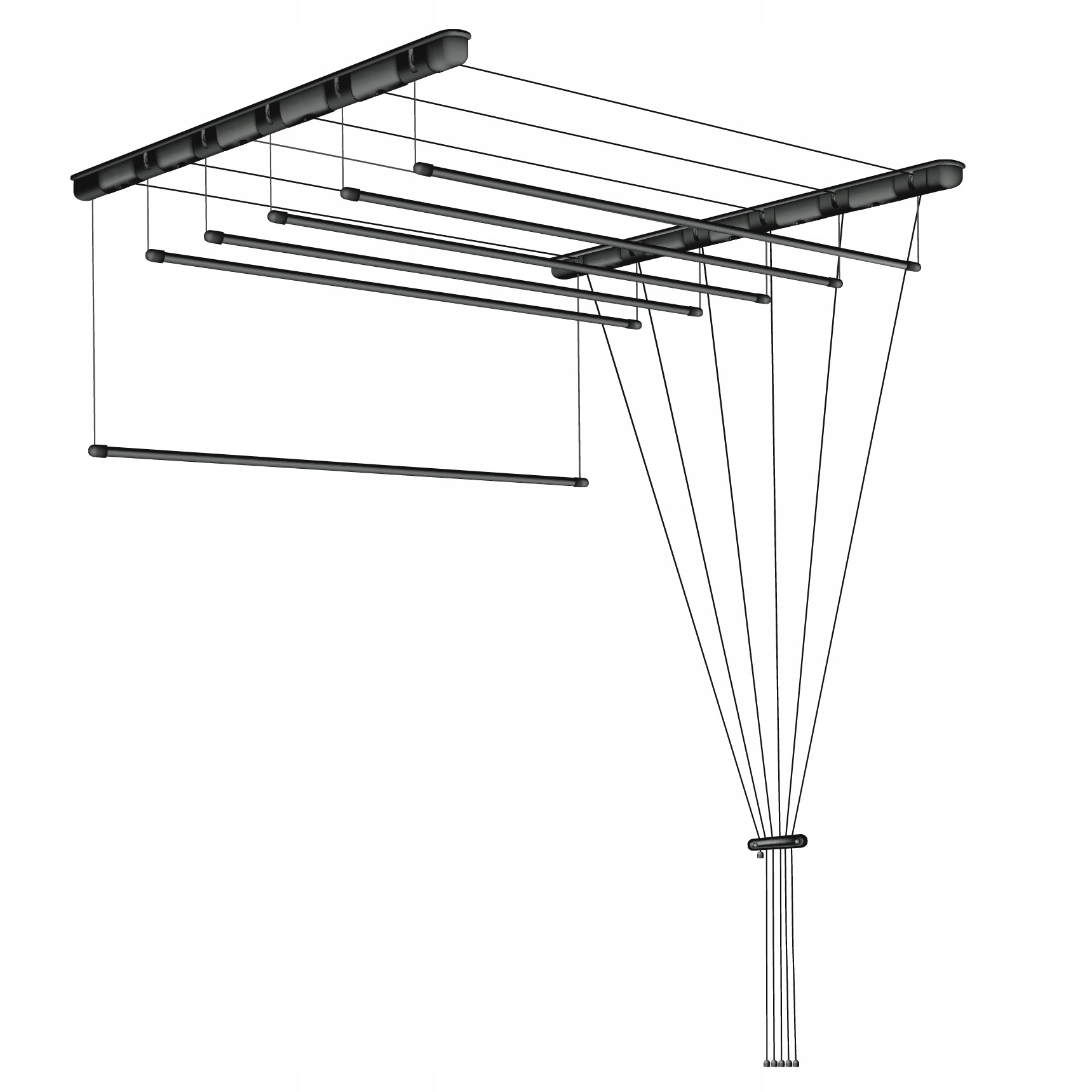 Завдяки опускаючим штангам, які не потребують жодних зусиль для опускання, у вас є легкий і швидкий доступ до розвішування білизни. Все, що вам потрібно зробити, це зняти шнурок з «основи» і опустити шнурок на потрібну вам висоту. ЦЕ ТАК ЛЕГКО!