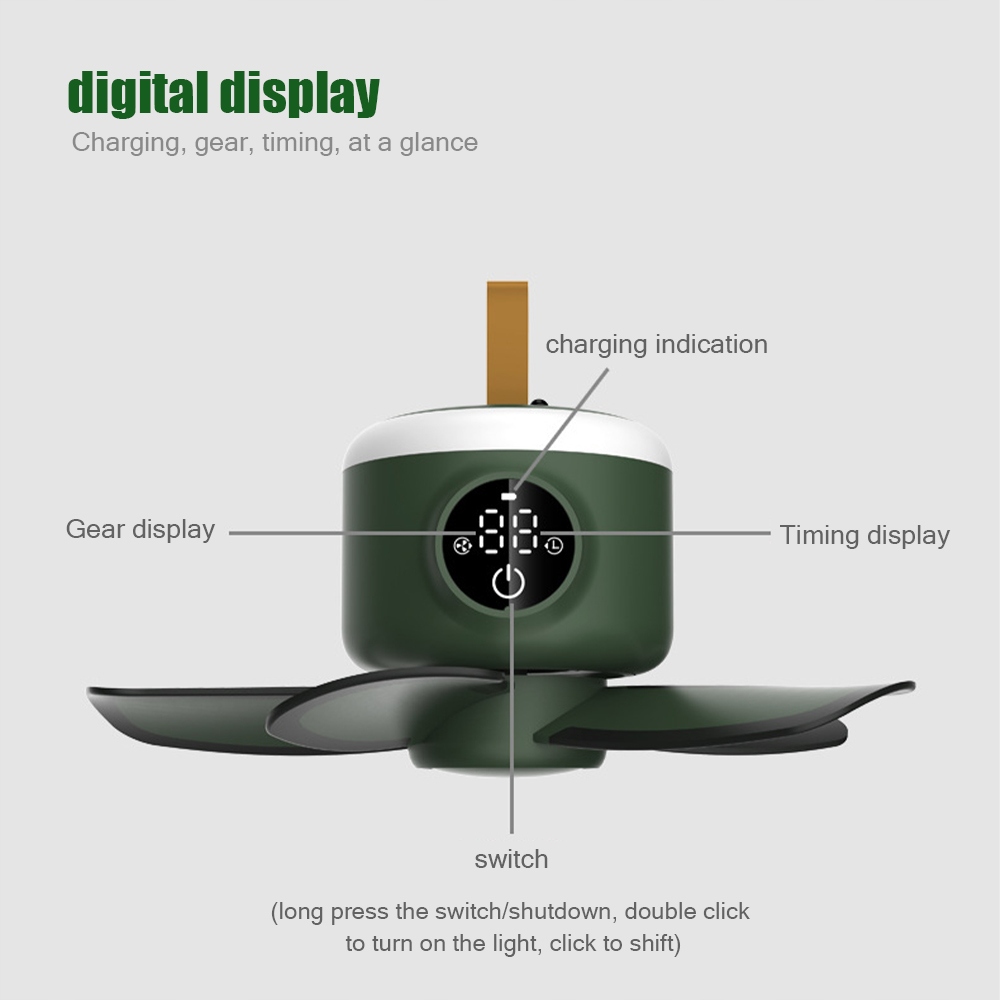 usb -стельова вентилятор - це пристрій, який можна використовувати в кемпері або наметі для забезпечення додаткової циркуляції повітря. Пристрій працює за допомогою побудованого акумулятора 8000 мАг, який може забезпечити кілька годин роботи на одному заряді.
