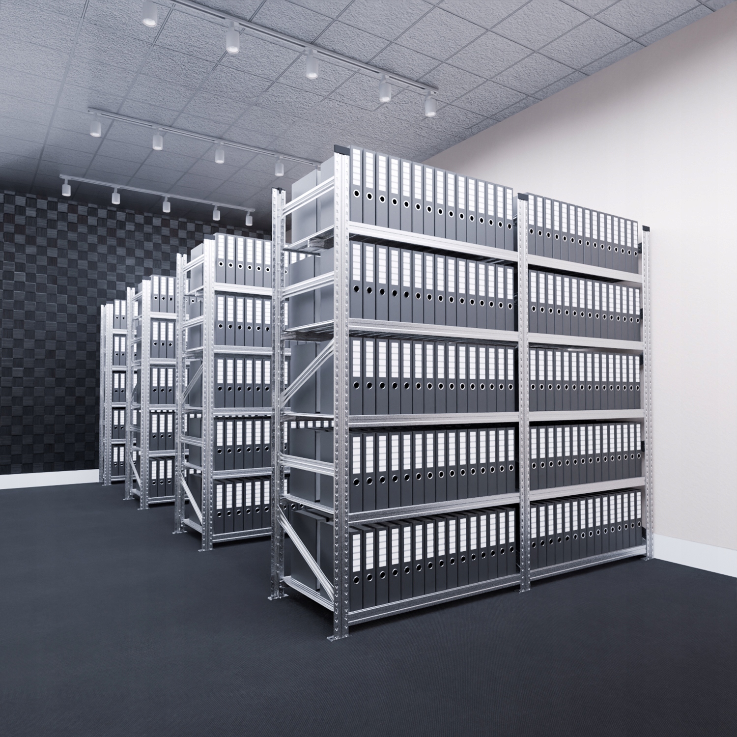 Наші полиці - це модульні системи. Це означає можливість розширення з наступними сегментами або розширеннями додатковими поличками навіть після декількох років використання. Широкий спектр можливостей розширення доступний залежно від наявної поверхні та методу зберігання документів.