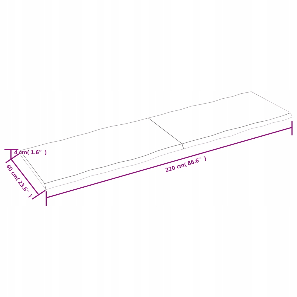 Стільниця, темно-коричнева 220x60x(2-4)см дерево з натуральним краєм