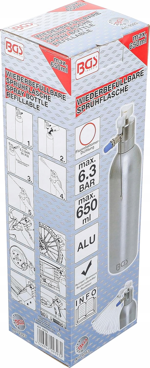 Включені компоненти: BGS 9393 | Пневматична пляшка з розпиленням | Алюмінієва версія 650 мл