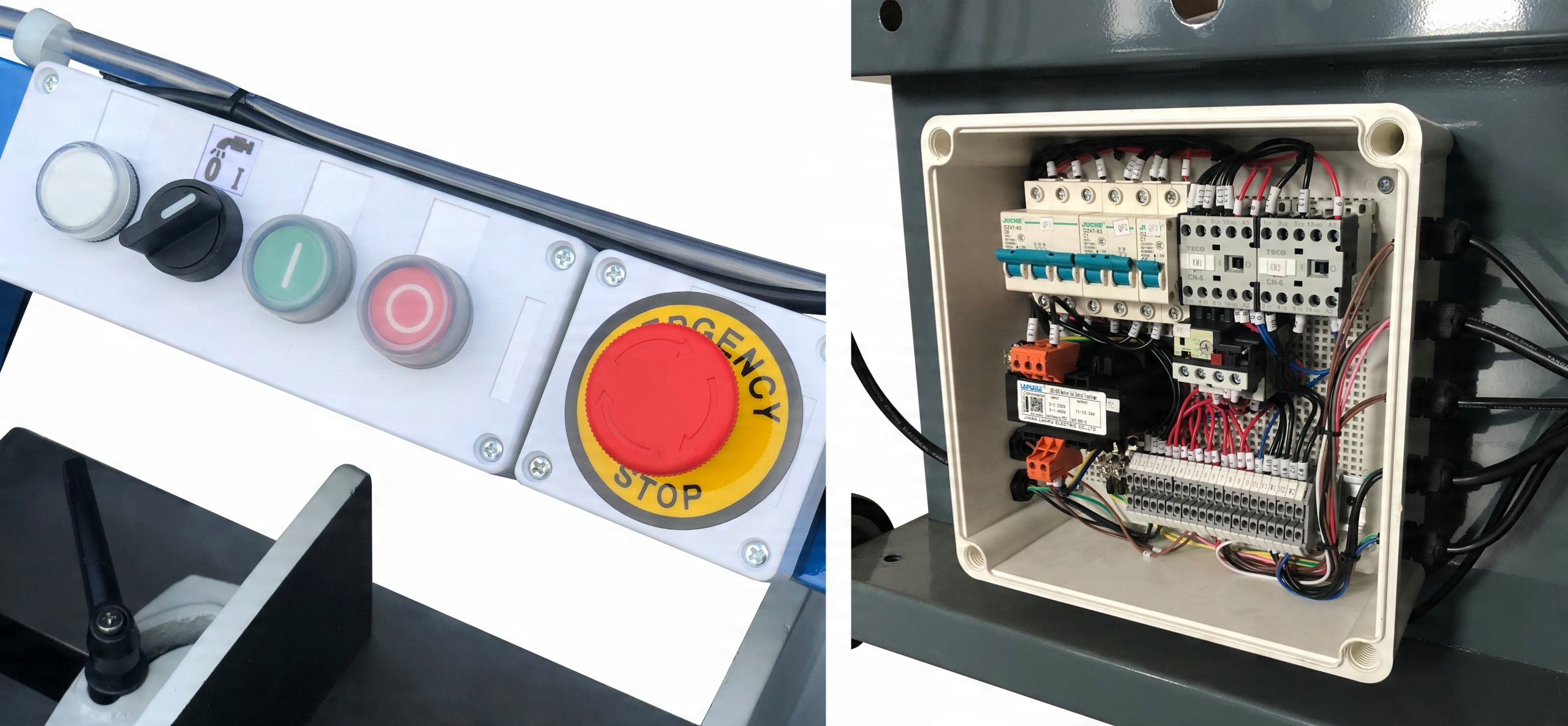 ✅ Безпека під час процесу різання забезпечується електричною установкою, яка відповідає всім вимогам CE . У машині є обмежений перемикач, що зупиняє машину після процесу різання, аварійний перемикач, таким чином -званий "безпечний гриб", ряд мікроконкеторів, які вимикають машину, коли, наприклад, ми відкриваємо кришку розрізної стрічки.