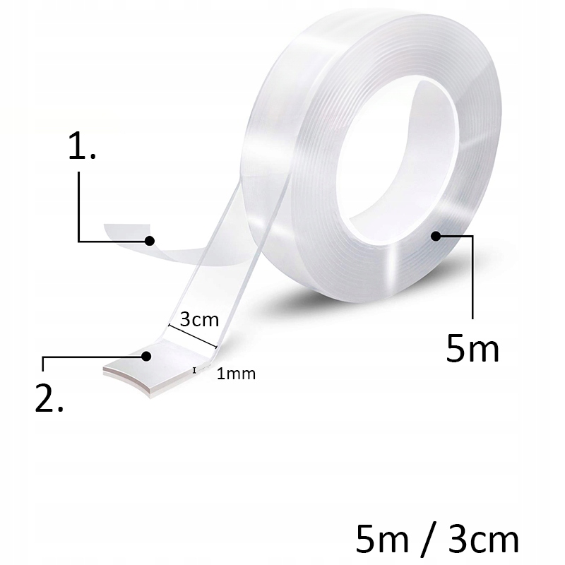 Подвійна стрічка 5 м/ 3 см нано багаторазового використання сильного кріплення клей