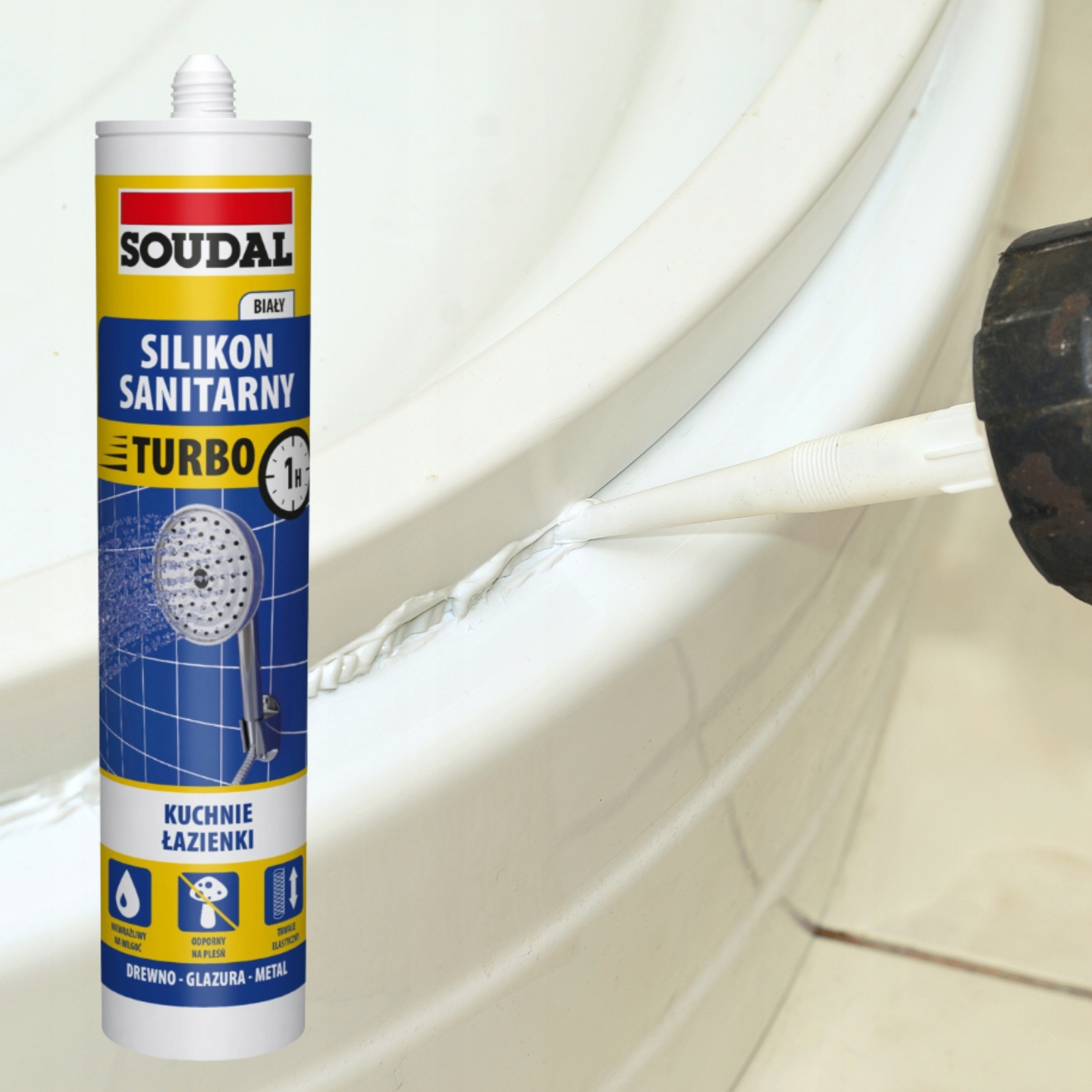 ▶ санітарний силікон турбо -судал - це швидкий нагороджений санітарний силікон із підвищеною стійкістю до вологи, грибів і форм. Водонепроникна лише після 2 годин нанесення.
