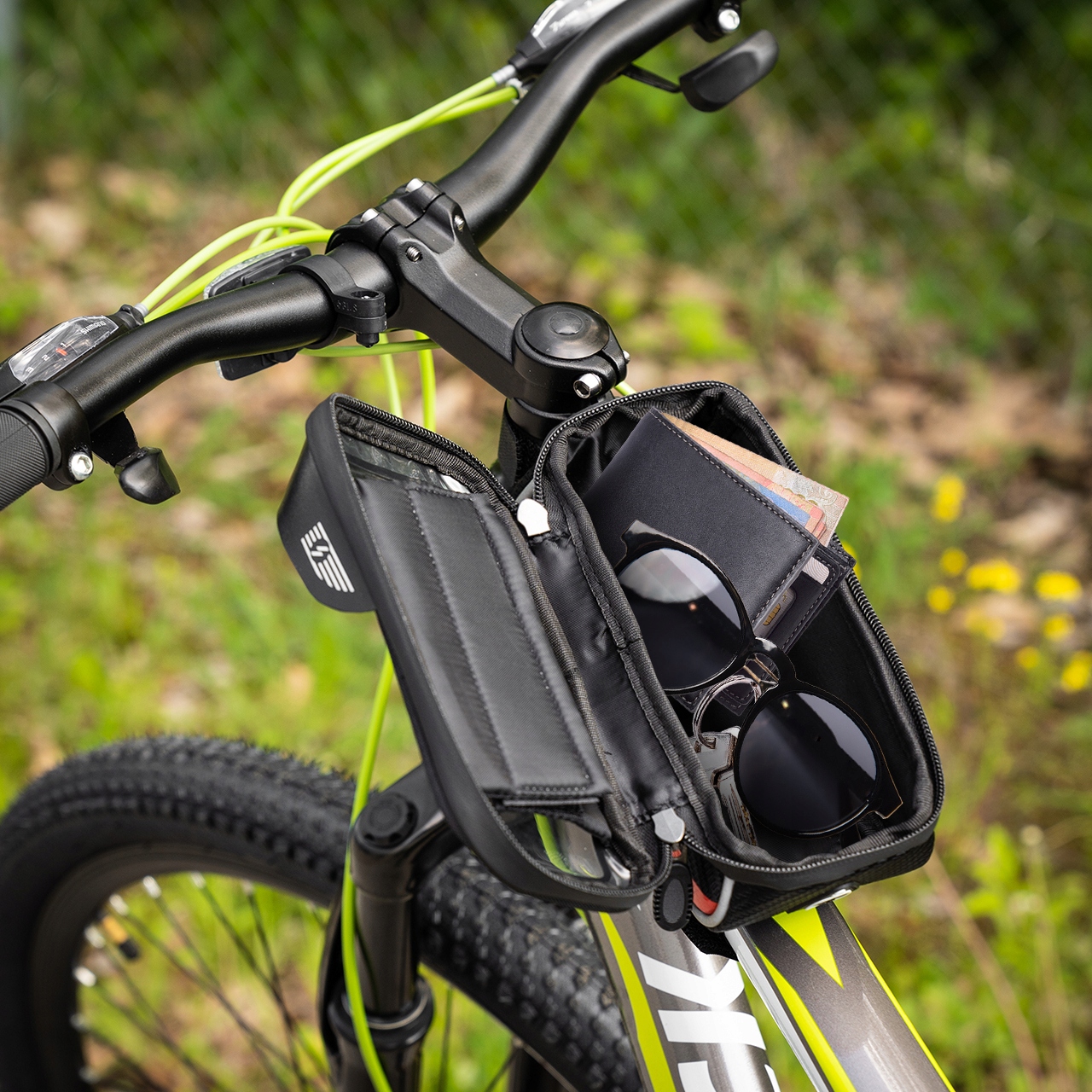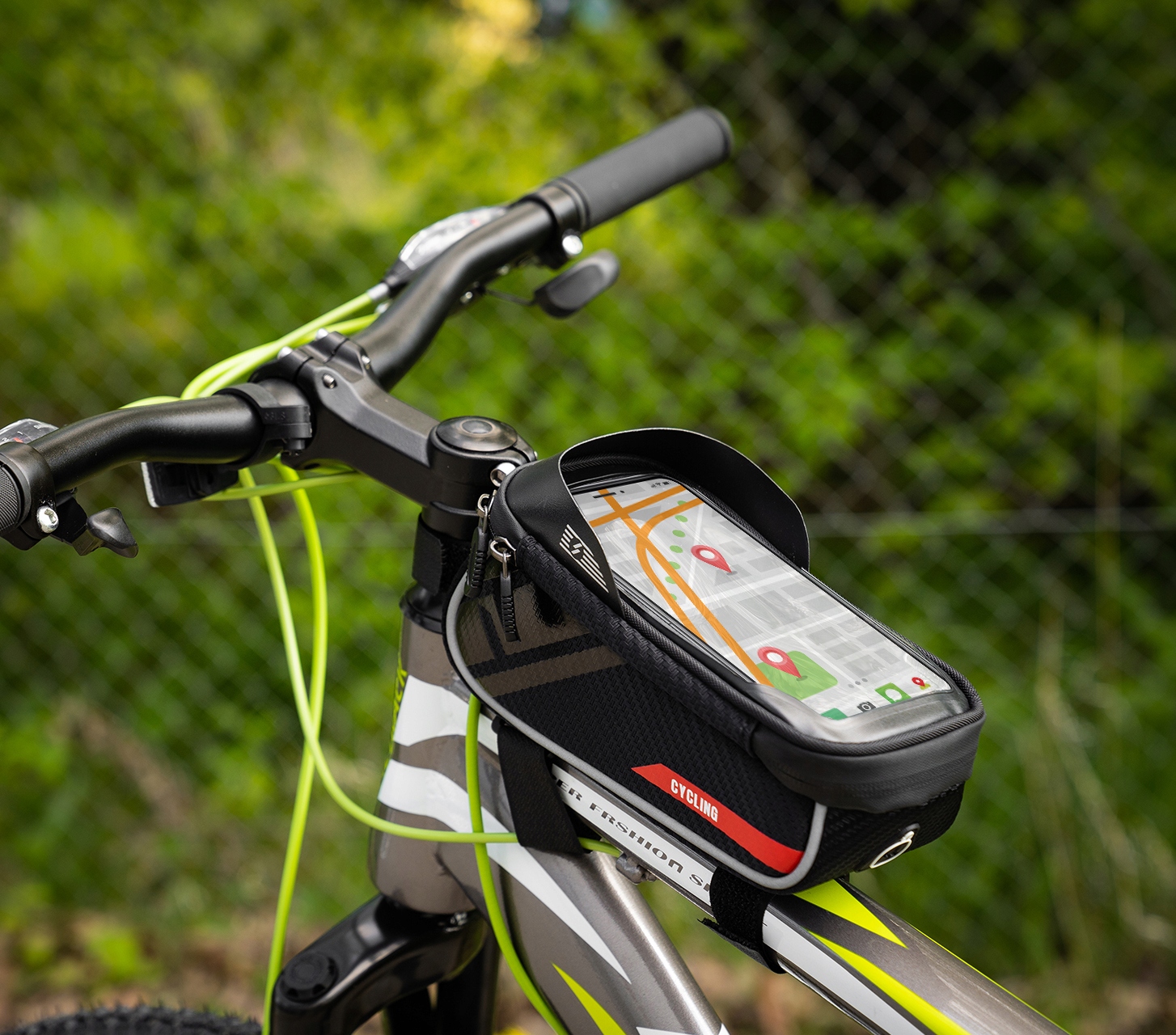 Унікальне рішення для любителів технологій. Сумка має тримач для телефону з прозорим віконцем, що дозволяє легко і комфортно користуватися телефоном навіть під час водіння. Користуйтеся навігацією, спортивними додатками або відповідайте на дзвінок, не втрачаючи контролю над велосипедом.