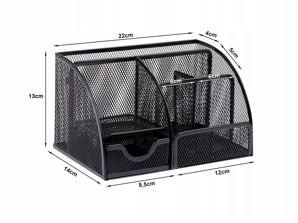 Настільний органайзер з легкою сітчастою металевою конструкцією, корисний вдома, в офісі тощо. У ньому можна зберігати необхідні шкільні та офісні приналежності: скріпки, клей, ножиці, ручки, кольорові олівці, фломастери, гумки, нотатки.