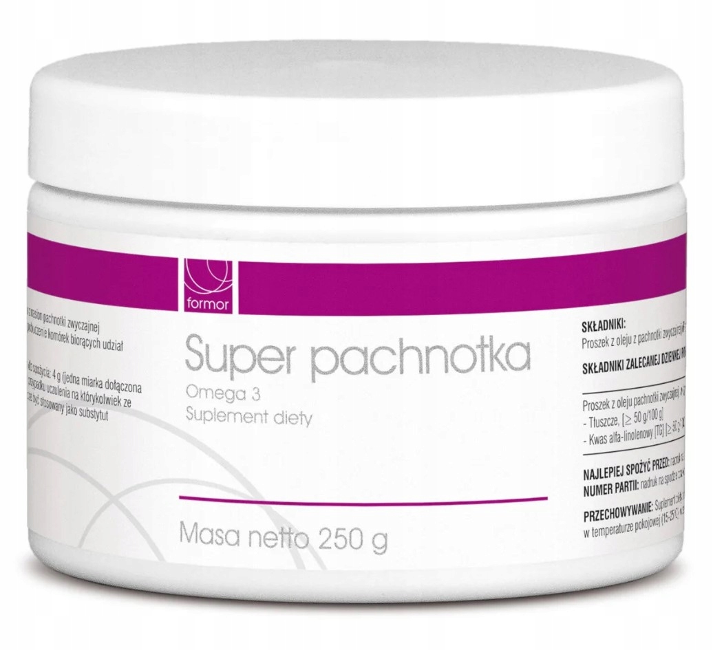 Super Omega 3 - це продукт, який доповнює щоденну дієту в Омега 3, що походить із насіння звичайних ароматів (Perilla Frutscens). Це рослина, багата жирними кислотами, особливо в пальмітичній, стеаринової, олеїчній, лінолевій кислоті, докозагексаенської кислоти [DHA] , eicosapentenic кислоти [EPA] і дуже важливі, рідкісні в рослинах, наш організм не виробляє ці суттєві жирні кислоти, тому ми переживаємо їх, надаючи продукти, що вживають, що вживається, або допитів, що вживають жир або допливів.