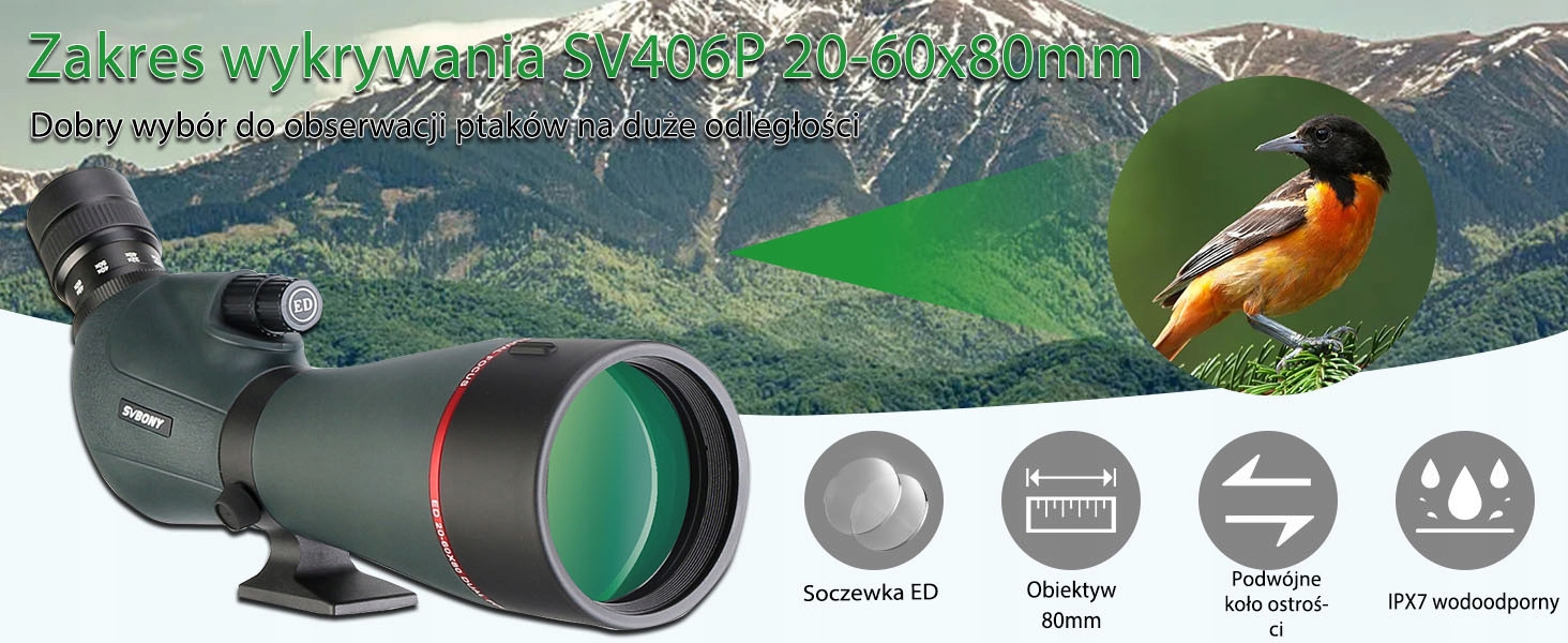 Svbony SV406P lunety ED, 20-60X80mm 1.25" lunety z zoomem z podwójnym, FMC