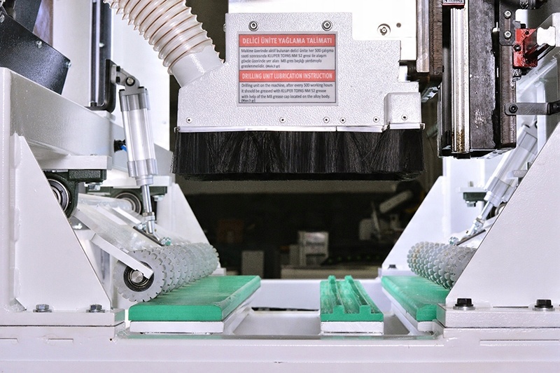 Свердлильний верстат з ЧПУ AHC-MAKINA RAPID DRILLING "S3010" може свердлити з 5 сторін, тобто 4 краї плюс верхню поверхню дошки/елемента (мініфікс, блюм, інші петлі, штифти для полиць, тощо), а також процес канавки/різання на верхній поверхні пластини/елемента.