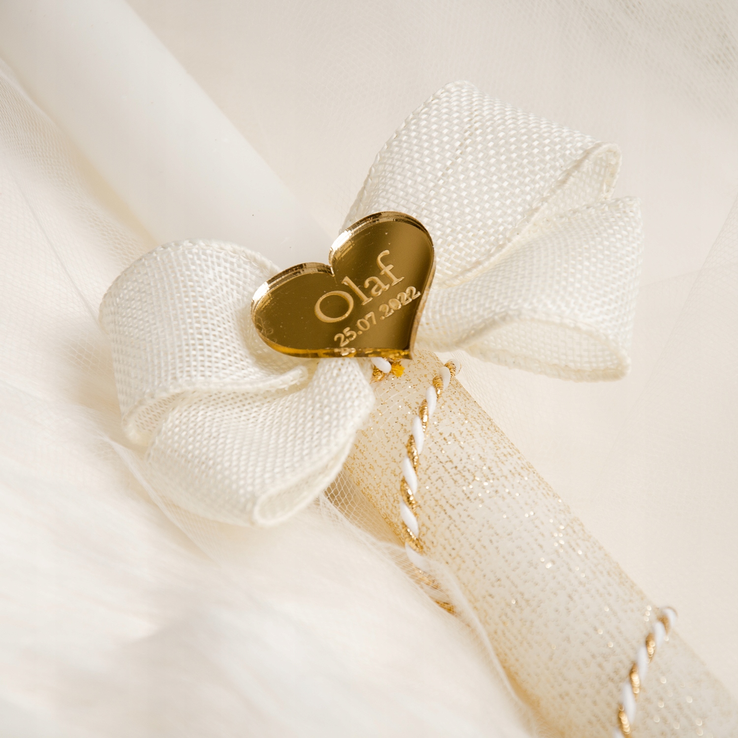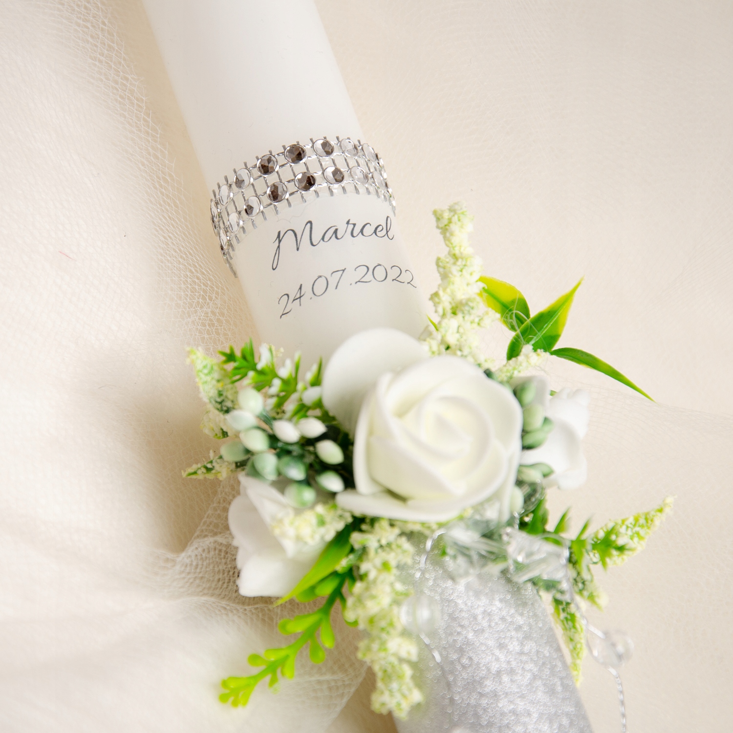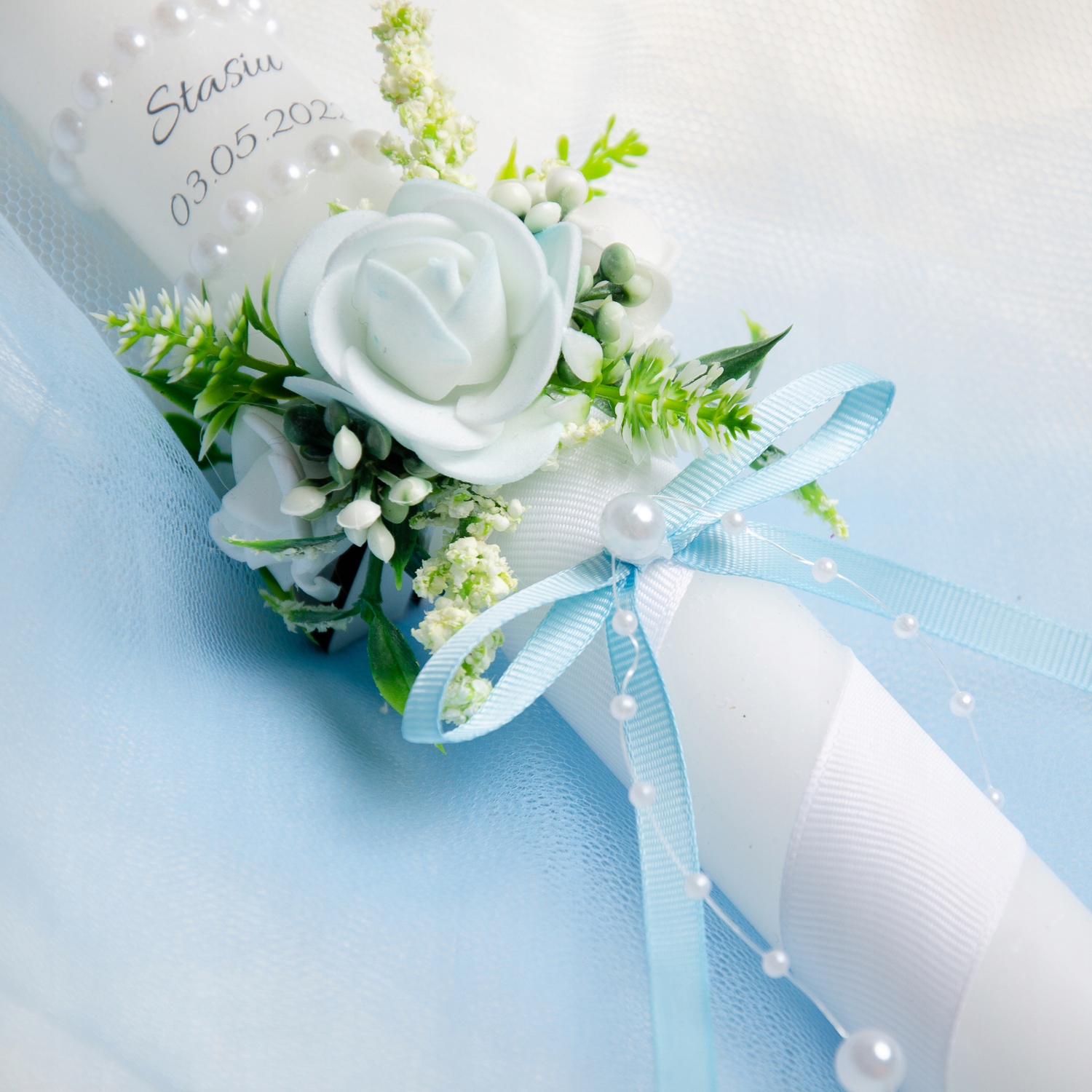 Красива свічка для хрещення, декорована вручну. Підготовлено з найкращим почуттям стилю. Для створення свічки ми використовуємо компоненти найвищої якості. На аукціоні ви знайдете різні прикраси, як для дівчаток, так і для хлопчиків.