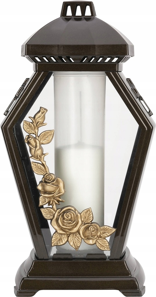 Сучасна конструкція та чудова форма свічки наголошує на важливих моментах відображення. Свічка лантеріну містить змінний внесок парафіну під час куріння близько 3 днів. Свічка з коричневим капюшоном і стоять. Декоративна свічка з золотою трояндою спереду. Парафінські вставки не згортаються і не згорять рівномірно до кінця. Вони не залишають чорні смуги на склянці свічки. Деталі продукту: