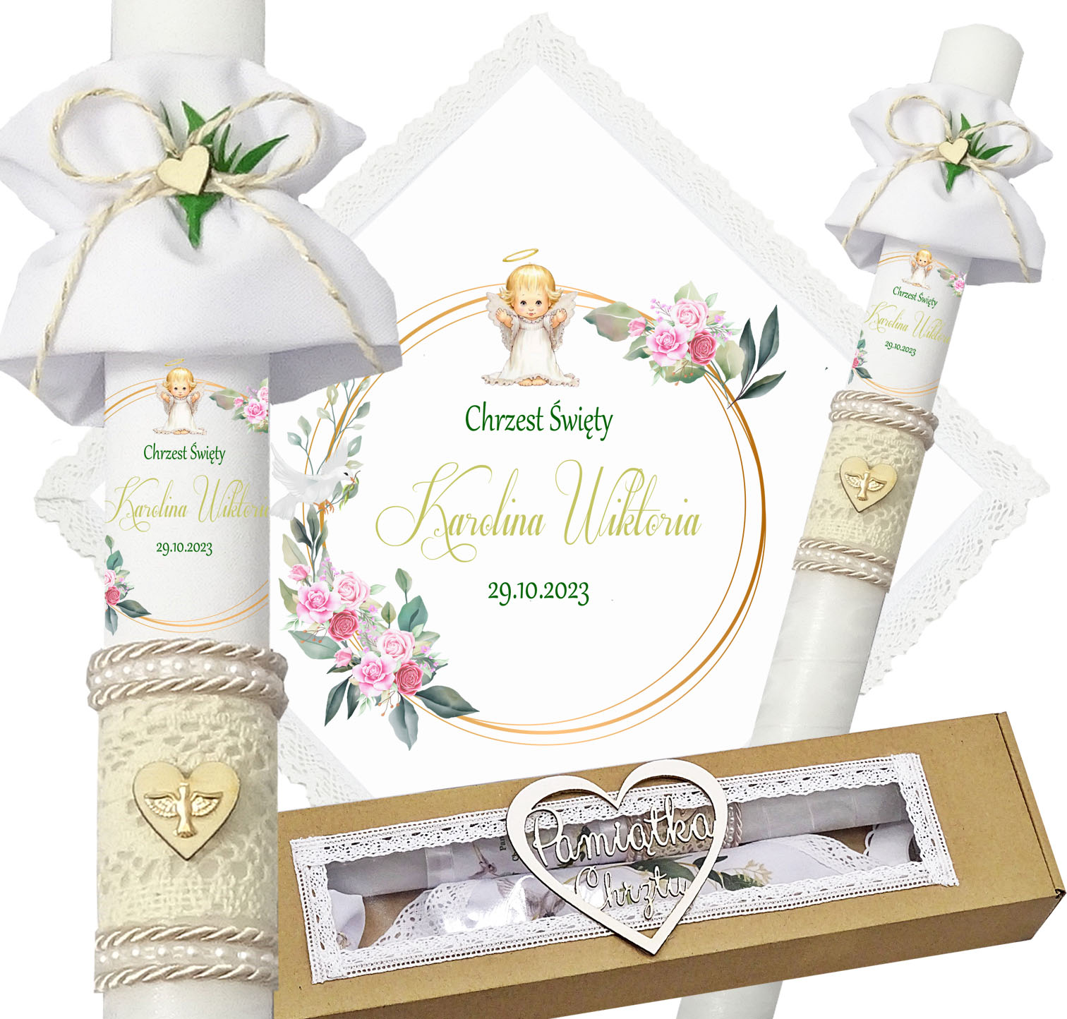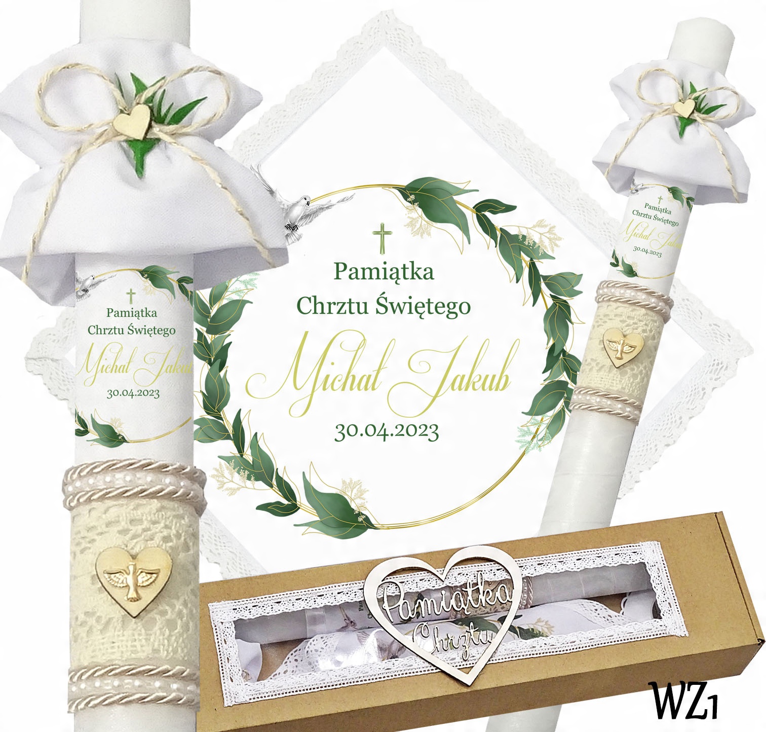 Представляємо надзвичайний набір з хрестильної ризи та свічки, створений з урочистим подія в житті кожної дитини. Халат виготовлений з білосніжного матеріалу та оброблений бавовняним мереживом, що надає йому елегантності та ніжності. Свічка декорована вручну і має принт з ім'ям дитини, що робить її унікальним і унікальним сувеніром. Свічка має нитку бежевого кольору, на її поверхні мереживо і дерев'яне серце з золотим символом Святого Духа. Інша частина свічки обмотується білою шифоновою стрічкою. Все це упаковано в білу картонну коробку з написом «Сувенір на Святе Хрещення», також в комплект входить тканинна бонусна сумка. Цей унікальний набір із одягу та свічки, безумовно, підкреслить церемонію хрещення та посилить емоції та спогади, пов’язані з цією особливою подією.