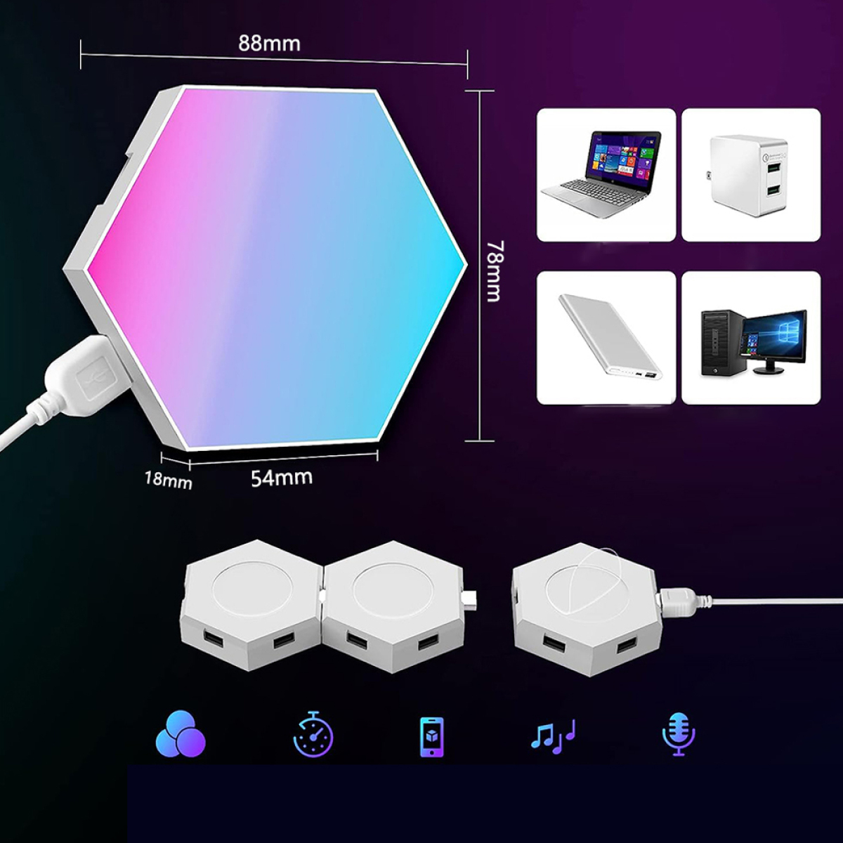 🌈 【З живленням від USB】: b>Для живлення шестикутної панелі можна використовувати блок живлення, ноутбук або інший USB-пристрій 5 В 2 А.