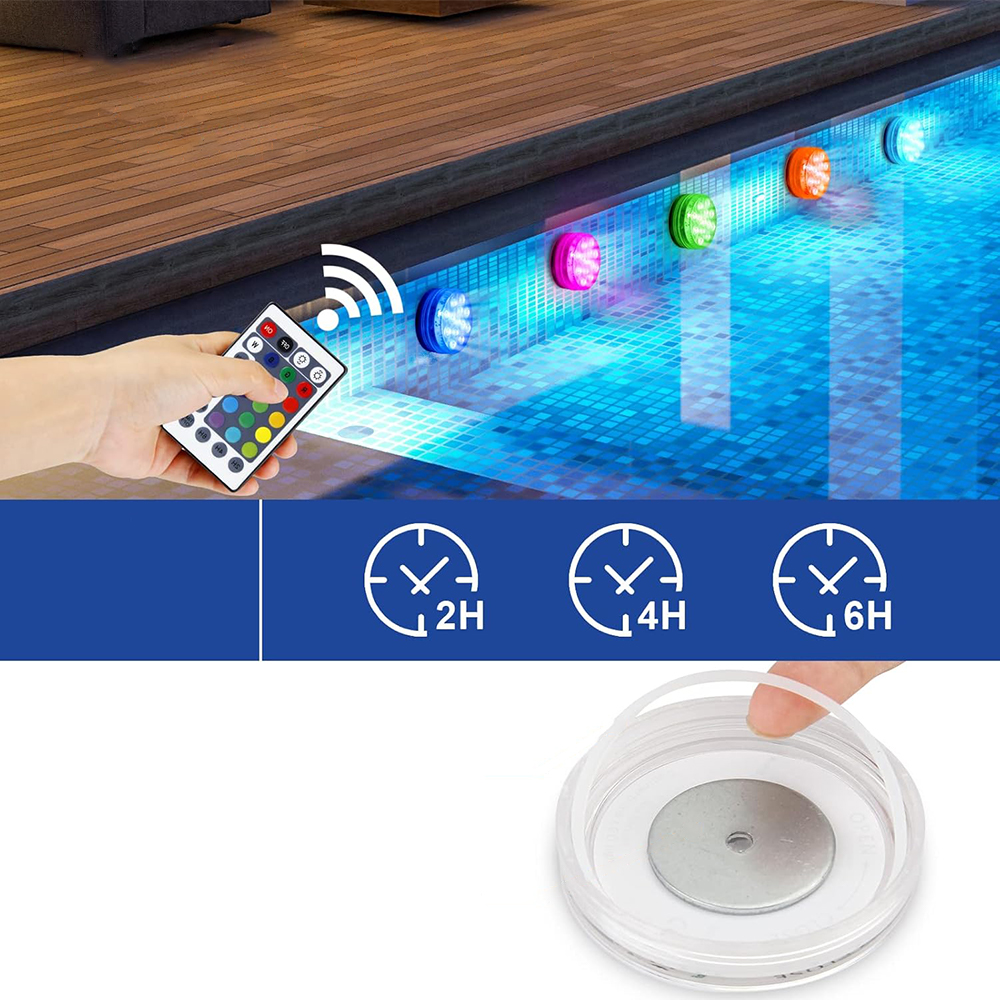 - Зовнішнє світлодіодне освітлення для пулу, яке можна легко керувати за допомогою дистанційного керування RF. Ширший і глибший діапазон дистанційного керування (50 метрів у повітрі та 5 метрів під водою);