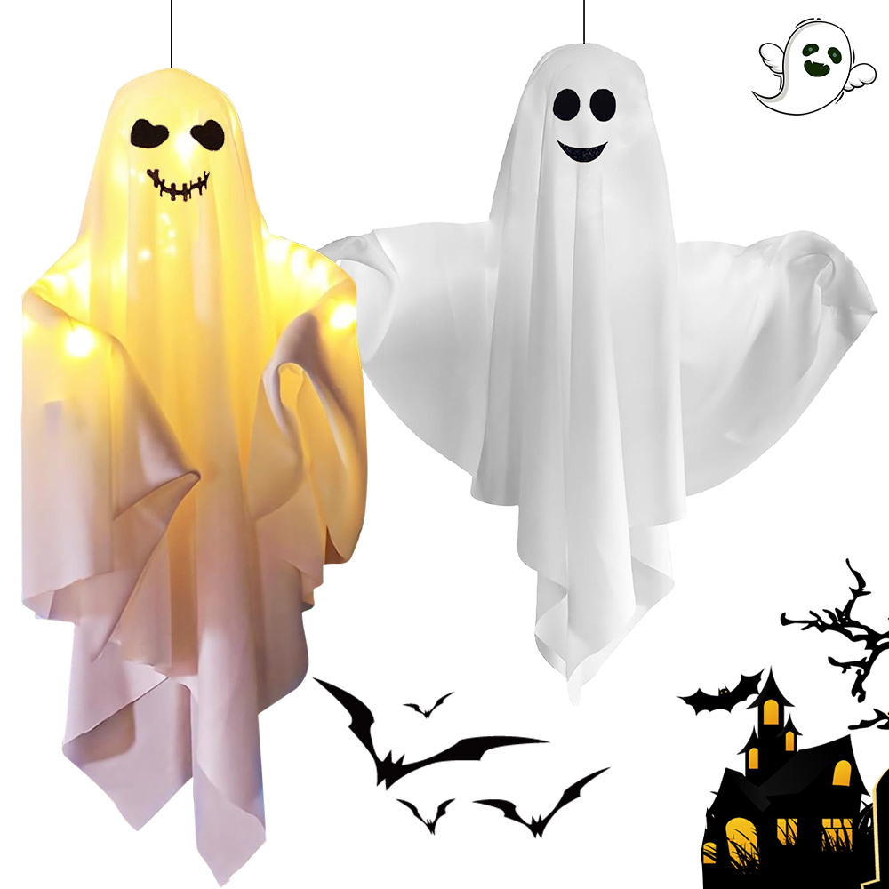Ідеальна прикраса для подій на Хеллоуїн, ця прикраса характеризується реалістичною легкою та гладкою тканиною, створюючи легкий та повітряний вигляд. Коли вітер дме, привид гойдається з ним, а світло обережно проникає в тканину, різко зміцнюючи враження реалізму, створюючи ілюзію справжнього духу, що блукає вночі і без зусиль створює захоплюючу, примарну атмосферу. Про примарну тему, надаючи кожному місці різдвяний акцент.