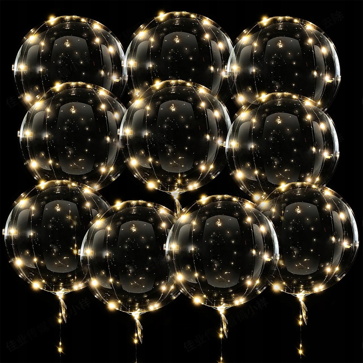 Упаковка з 10 повітряних куль, що світяться, світлодіодних повітряних куль Bobo Helium (повітряні кулі постачаються без гелію), прозорої повітряної кулі з теплими білими різдвяними вогнями на день народження, весілля, день святого Валентина