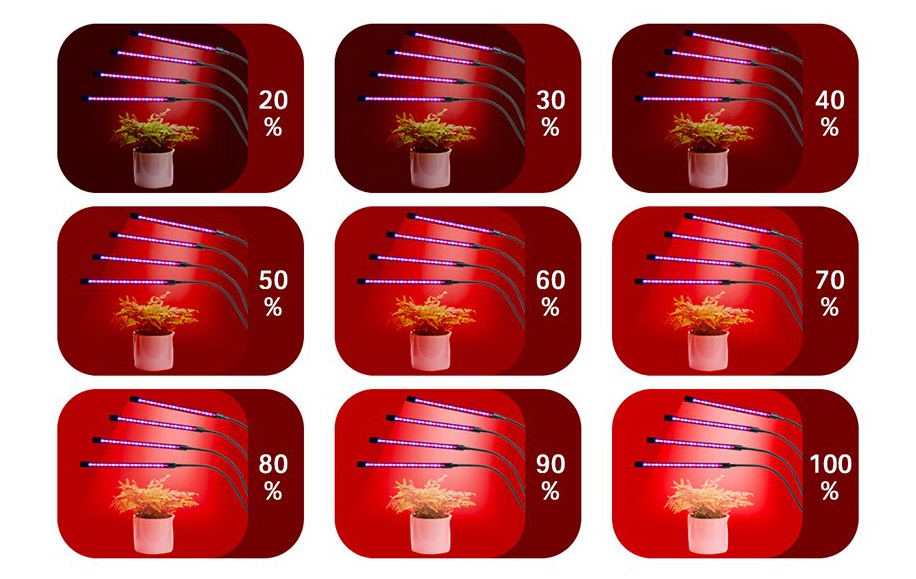Лампа підтримує можливість налаштування яскравості під індивідуальні потреби рослини. Установіть будь-яку інтенсивність експозиції від 20 до 100% одним натисканням кнопки. Рослини ростуть приблизно в 5 разів швидше, ніж у природному середовищі.