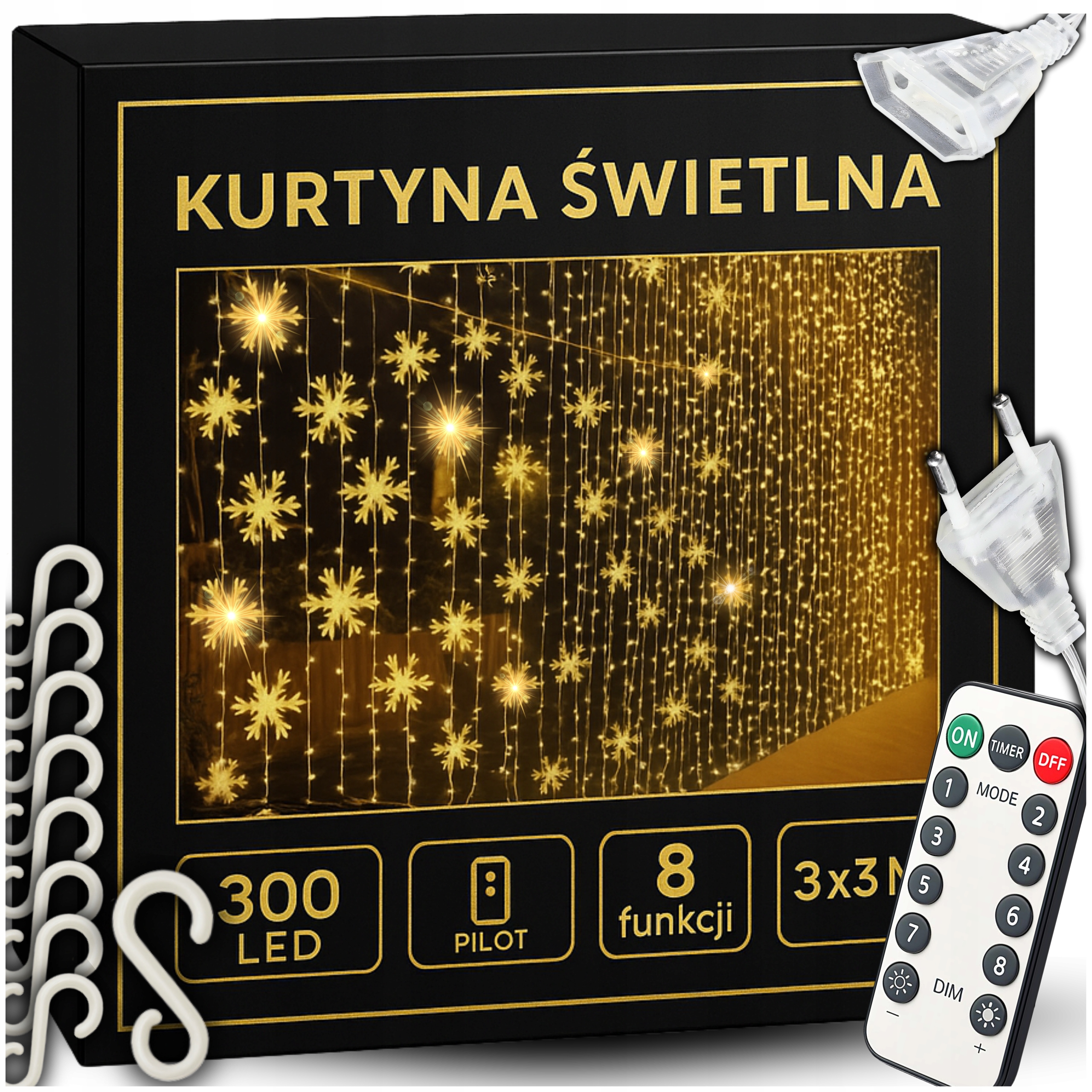 Штора містить 300 світлодіодів, які ефективно підсвітлять будь-який інтер'єр, створюючи затишну атмосферну атмосферу, ідеальну для святкового сезону.