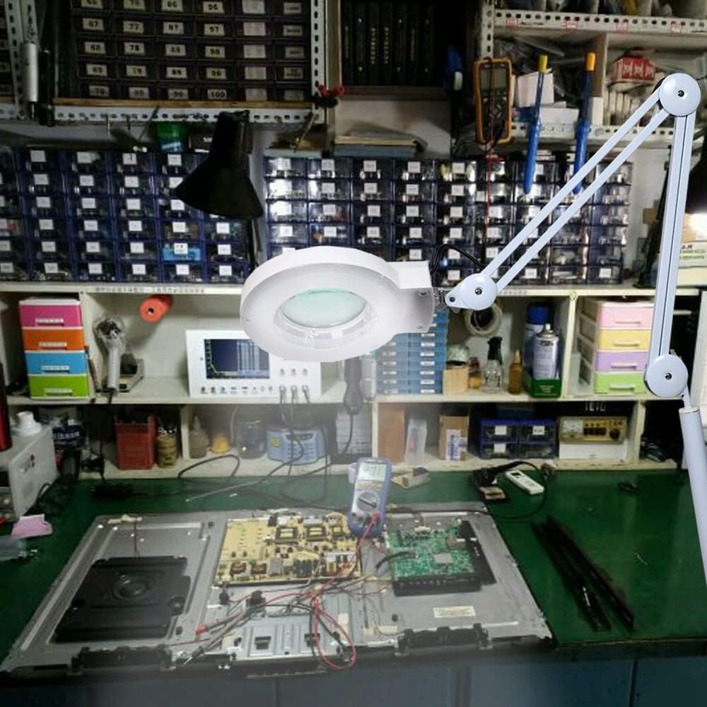 лампа з лупою складається з високоякісного збільшеного скла діаметром 20 см, що підтримує 5 діоптерів і, таким чином, дозволяє більш точного розпізнавання предмета.