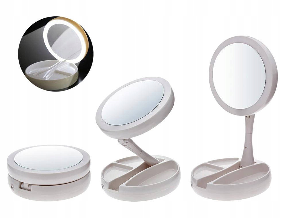 Дзеркало з підсвічуванням — це дуже практичний і надзвичайно корисний пристрій для косметичних процедур, макіяжу чи одягання контактних лінз. Воно має функціональні відділення, куди можна покласти зручну косметику. З одного боку розташоване дзеркало в натуральну величину, а з іншого воно має десятикратне збільшення. Залежно від потреби ми можемо повернути дзеркало в один або інший бік.