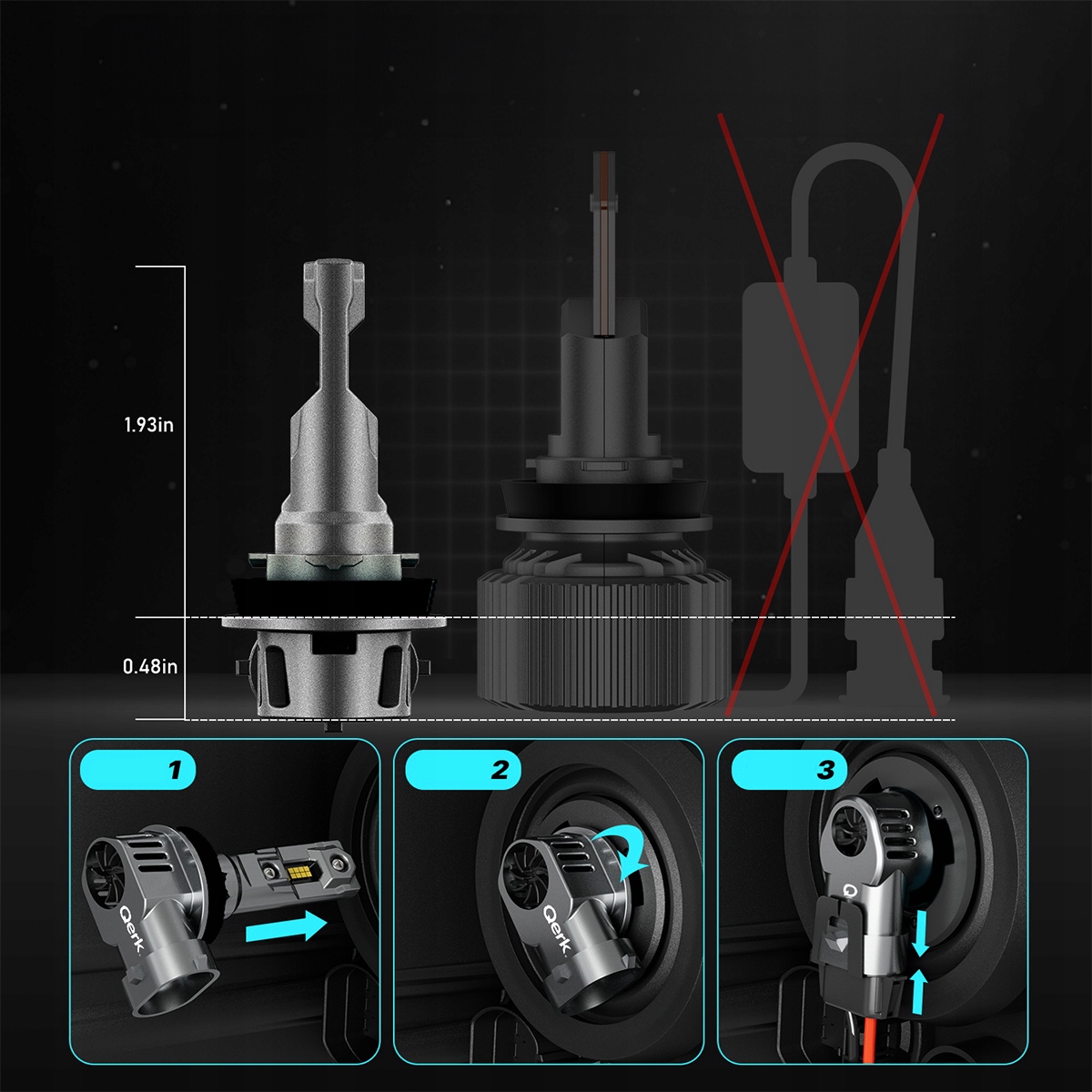, поклавши черепаху теплового раунду в корпус модернізації, можна встановити двомісний спосіб, як звичайна галогенна цибулина. Більше не потрібно використовувати адаптери для розетків з нетрадиційним складанням. Це нова модель з конструкцією з турбостійним у нижній частині конструкції, яка дозволяє використовувати ще сильніший світлодіодний чіп Qerk® Q11 з безпрецедентним потоком світла.