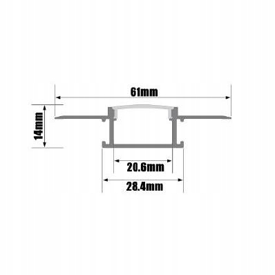 < ul >MINILUX LINE – врізний профіль. Високий алюмінієвий профіль для монтажу в гіпсокартон - має крила для штукатурки. Можна використовувати різні світлодіодні стрічки та стрічки шириною до 20 мм.