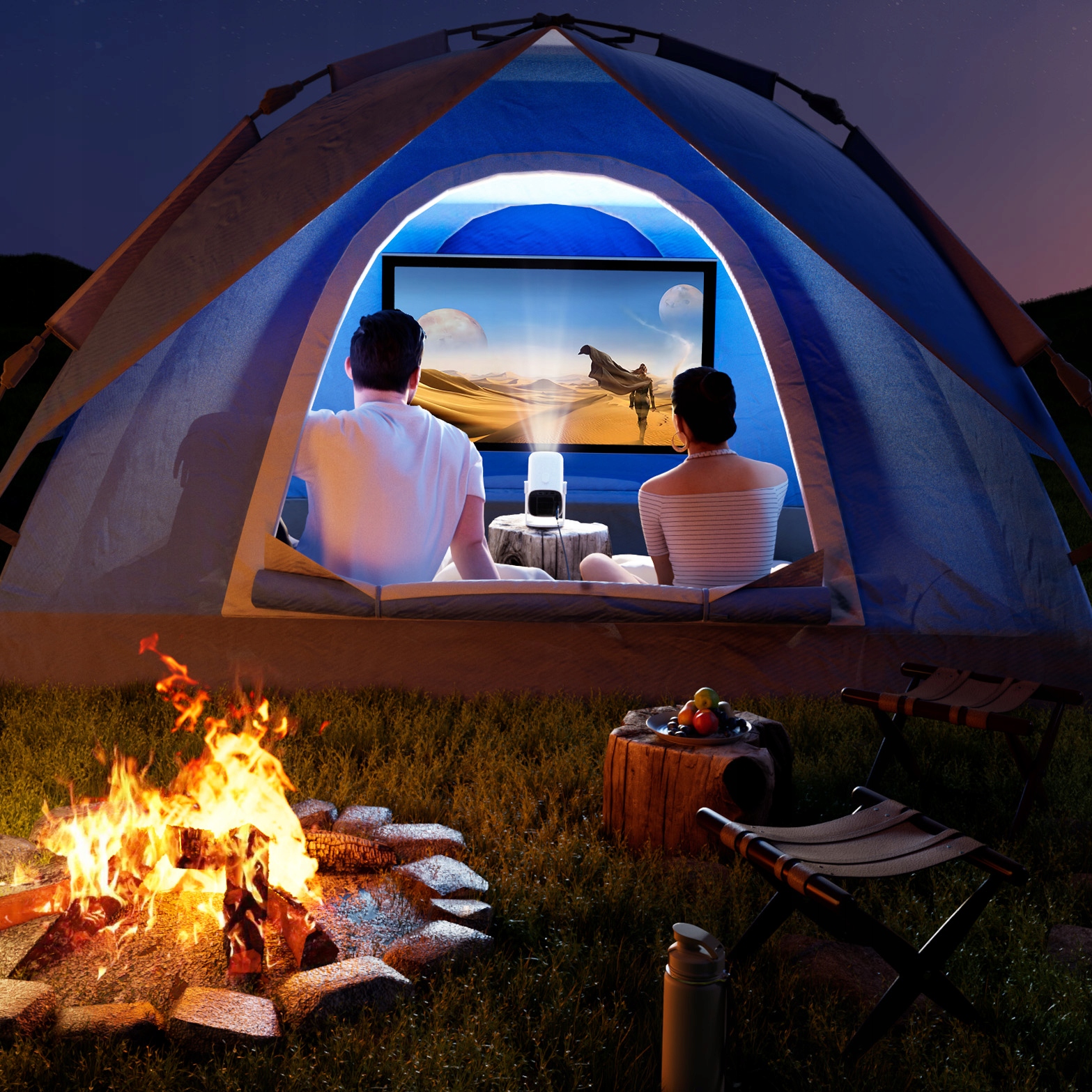З цим універсальним проектором це легко: Основа, що обертається на 180 градусів, дозволяє встановити зображення в будь -якому місці, з підлоги до стелі, від підлоги до стелі, забезпечення гнучкості під час гри в фільми. (Ви можете просто покласти його в рюкзак або валізу), наприклад, коли турбує, подорожуючи або на свіжому повітрі.
