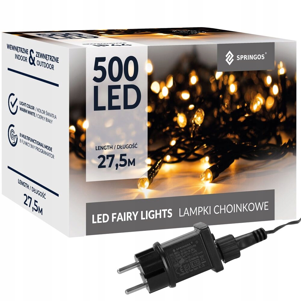 світлодіодний світловий ланцюг - 27,5 м, 500led, 8 функцій, пам'ять, ip44, тепло білого