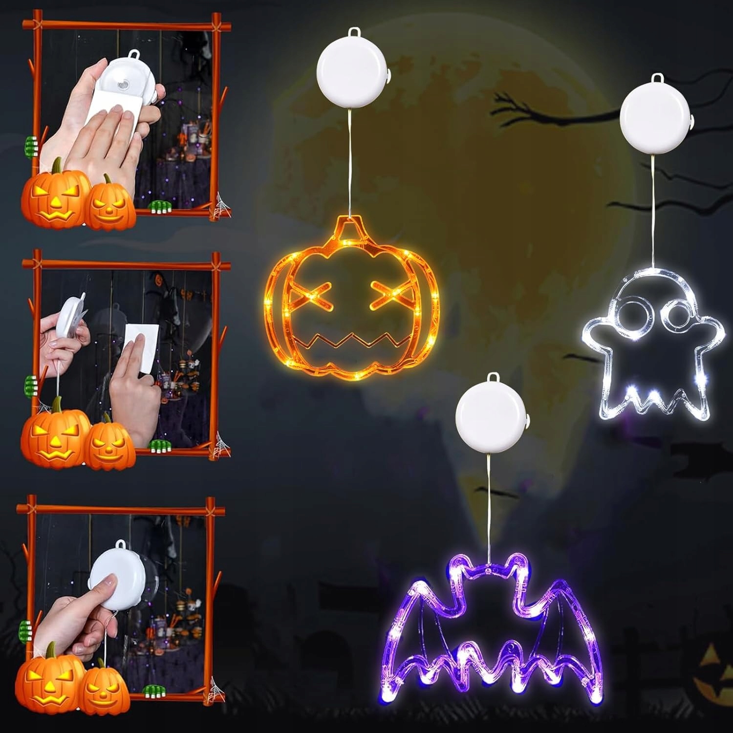 🎃🎃🎃Прикраси на Хелловін: покращіть моторошний настрій за допомогою нашого набору з трьох світлодіодних віконних ліхтарів. Креативно розроблені у формі помаранчевого гарбуза, білого привида та фіолетового кажана, вони додадуть веселого шарму вашим вікнам на Хелловін. (Ви можете вибрати кількість світильників відповідно до розміру свого вікна; чим більше ви купите, тим більше буде видно атмосферу Хелловіна.)