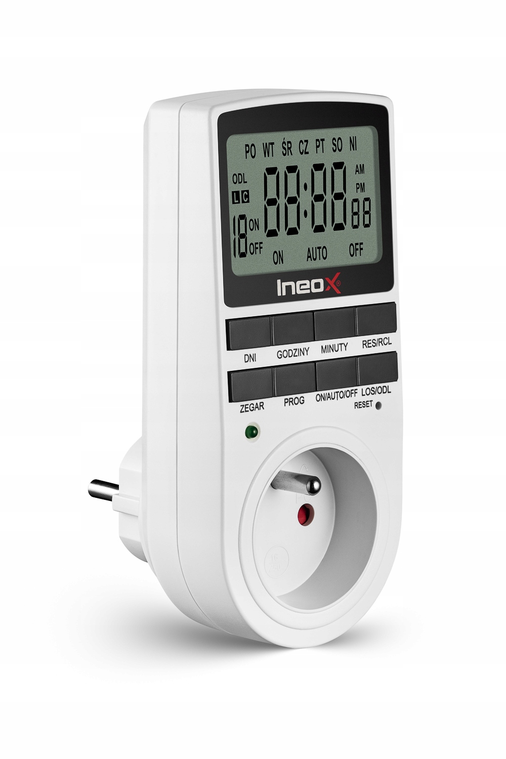 Пристрій має польські кнопки Описи та повідомлення на великому РК -дисплеї. Нова версія програміста Ineox PC-02 додатково оснащена переконаннями секунд на дисплеї та функції вниз, тобто можливість встановити час для відключення напруги. Максимальний час встановлення часу - 99 годин 59 хвилин і 59 секунд.