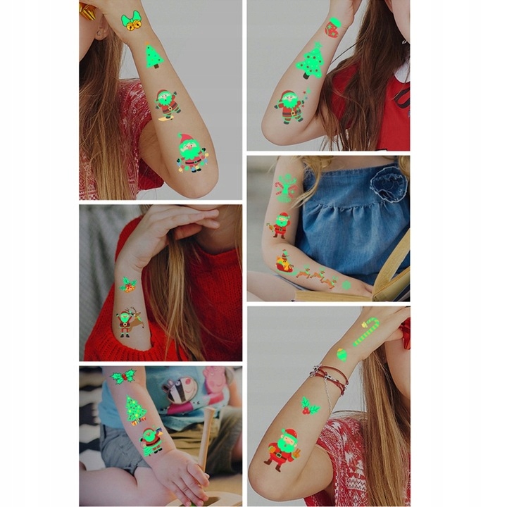 У набір входить 15 різних аркушів з красивими татуюваннями, що світяться в темряві, для ваших дітей.