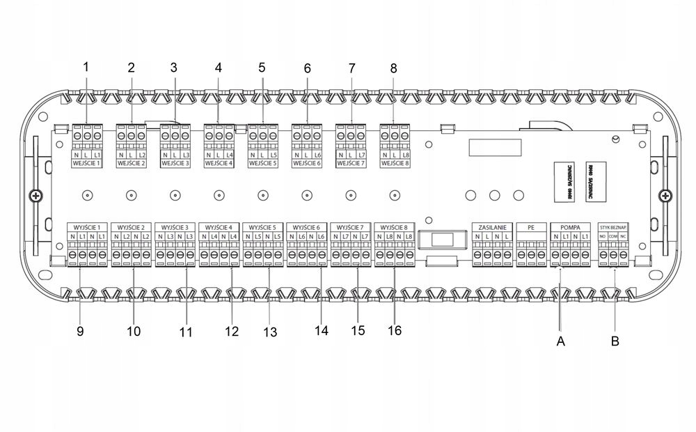 • 16 230 В виходи напруги (2 виходи в зону) або навантаження кожної зони до 0,3A (~ 70 Вт)