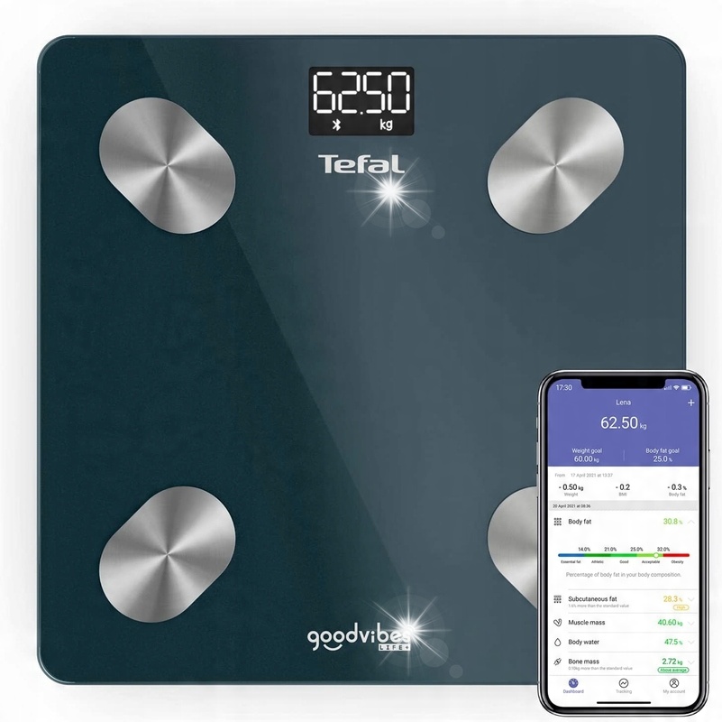 Ви не тільки ваша вага! Кожен з нас є унікальним - від віку до індивідуальних потреб у здоров’ї. Простіше досягти бажаних результатів за допомогою 10 варіантів аналізу тіла та його складу (включаючи індикатор ІМТ або рівень жиру, м’язову та кісткову масу) та можливість встановлення рівня мрії. Максимальне вагу навантаження Tefal goodvibes становить до 180 кг, а пристрій працює з точністю 100 г. Завдяки тому, що будь -яка кількість людей може використовувати вагу, ваші близькі також зможуть піклуватися про ваше здоров'я!
