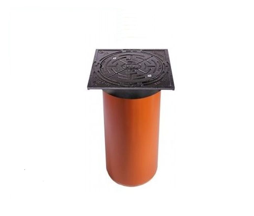 Чавунний каналізаційний люк, квадратний, прикручений 2 гвинтами, клас A15 = 1,5T з телескопічною трубою ПВХ DN315 мм,