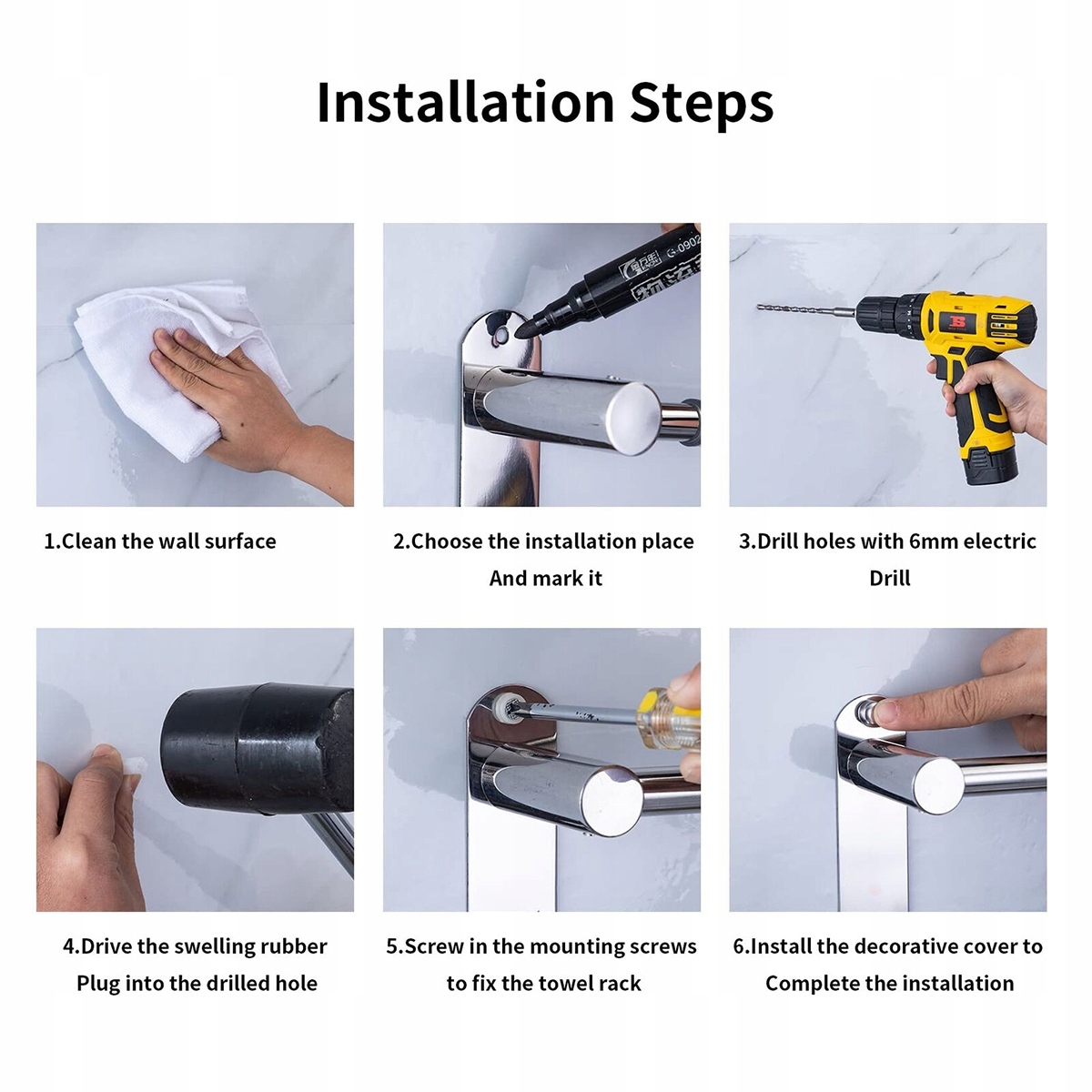 ✅ Два варіанти встановлення: міцний клей (без свердління) / гвинти (свердління), підходить для багатьох стін поверхні. Примітка. Після встановлення міцним клеєм зачекайте 48 годин перед використанням.