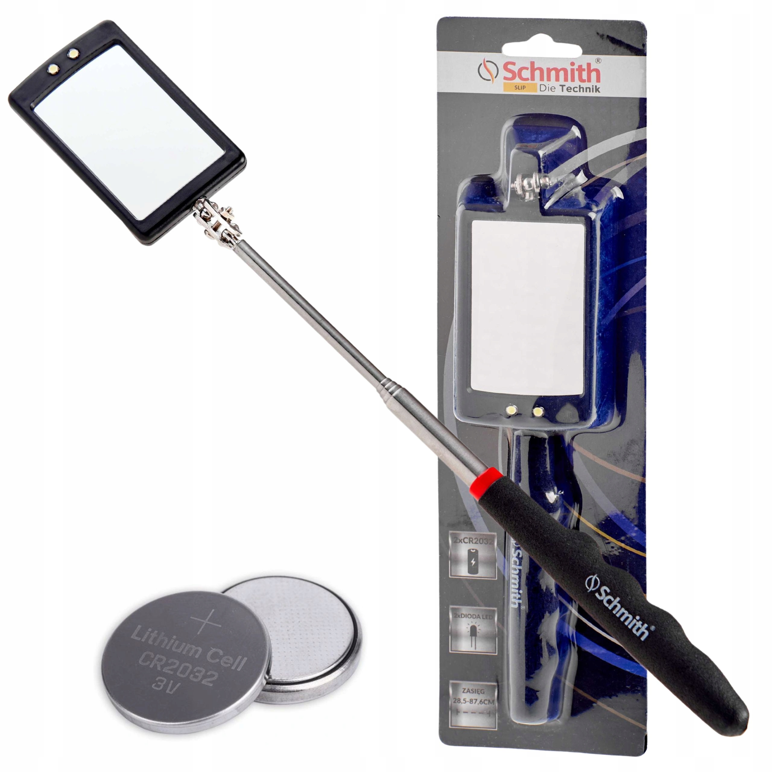 довжина до 87 см , а прямокутна форма дзеркала забезпечує ефективну перевірку жорстких -дорічних ділянок у майстерні або під час обслуговування. Світло у вигляді світлодіодів, покращення видимості та забезпечення ефективної роботи навіть у погано освітлених місцях.