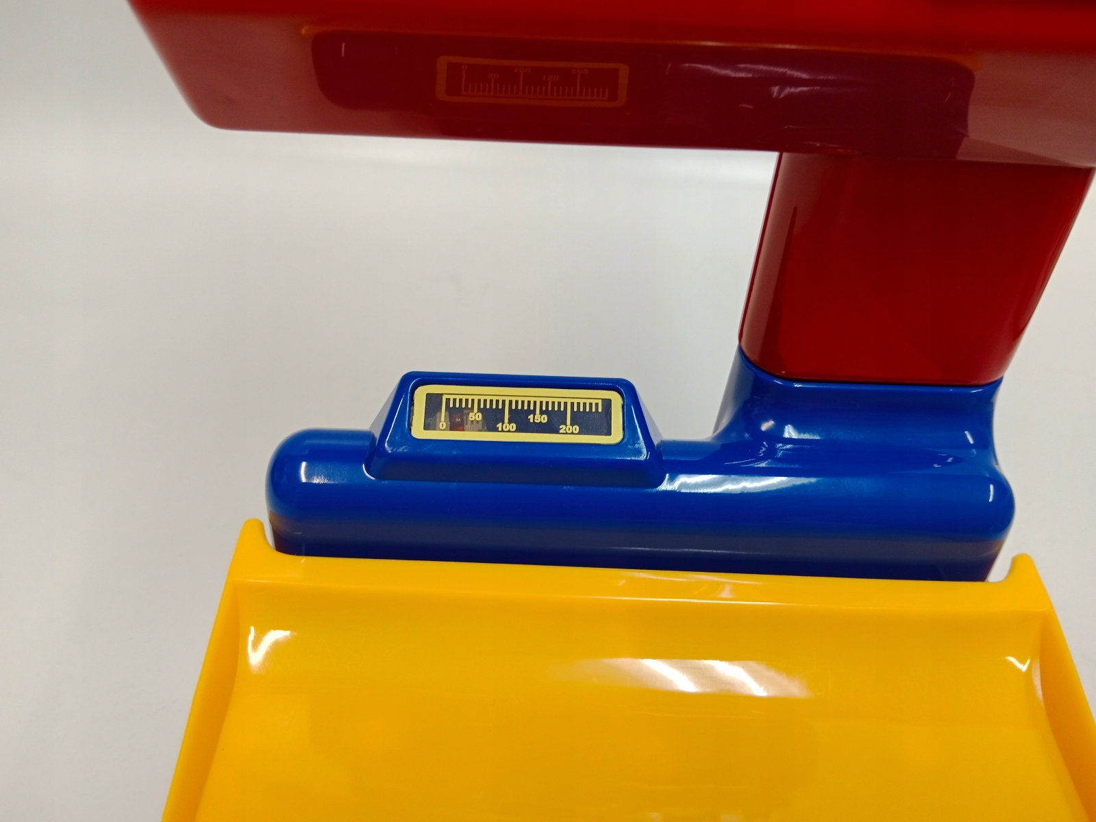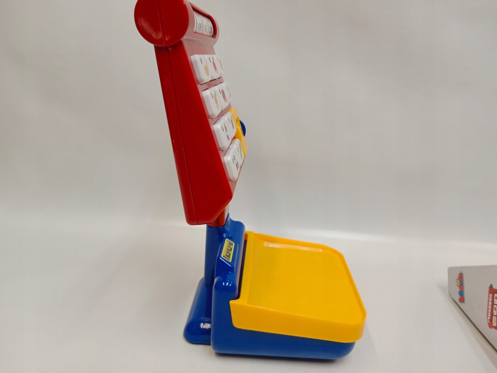 Для належної роботи овочесховища необхідні ваги! чому Тому що це дуже весело! Як тільки на ваги кладуть груші, яблука, банани або сир і сосиски, піддон опускається. Тепер маленькі клієнти або зайняті продавці можуть натиснути символ фруктів чи овочів і повернути ручку, і на дисплеї з’явиться сума до сплати. знижується при розміщенні на ньому товарів із продуктового магазину.