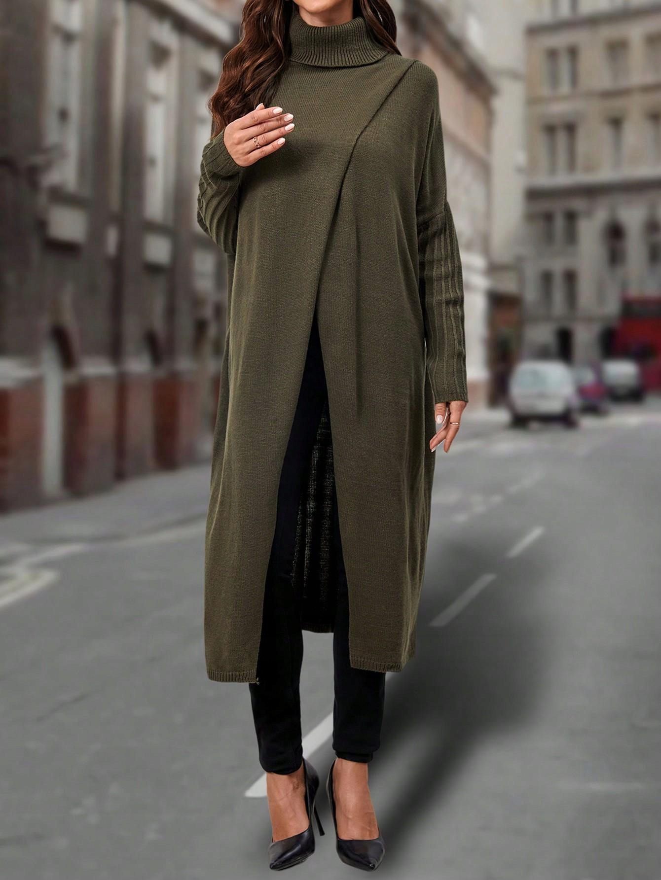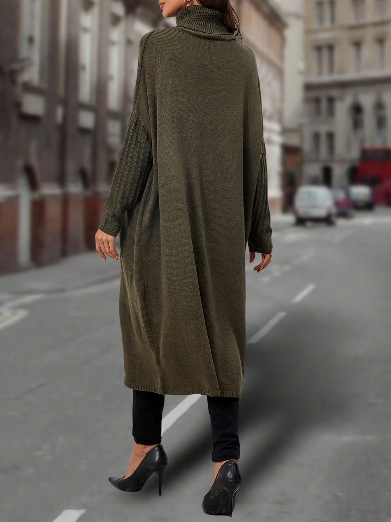 ТЕПЛЕ ПОНЧО З ГОЛЬФОМ ВОРОТА З ДОВГИМ РУКАВОМ ХАКІ В'ЯЗАННЯ EMERY ROSE 38