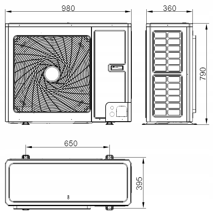 - Зовнішній модуль з холодоагентом R32 труби холодоагенту довжиною до 10 м, безшумний компресор з інверторним керуванням та електронний розширювальний клапан