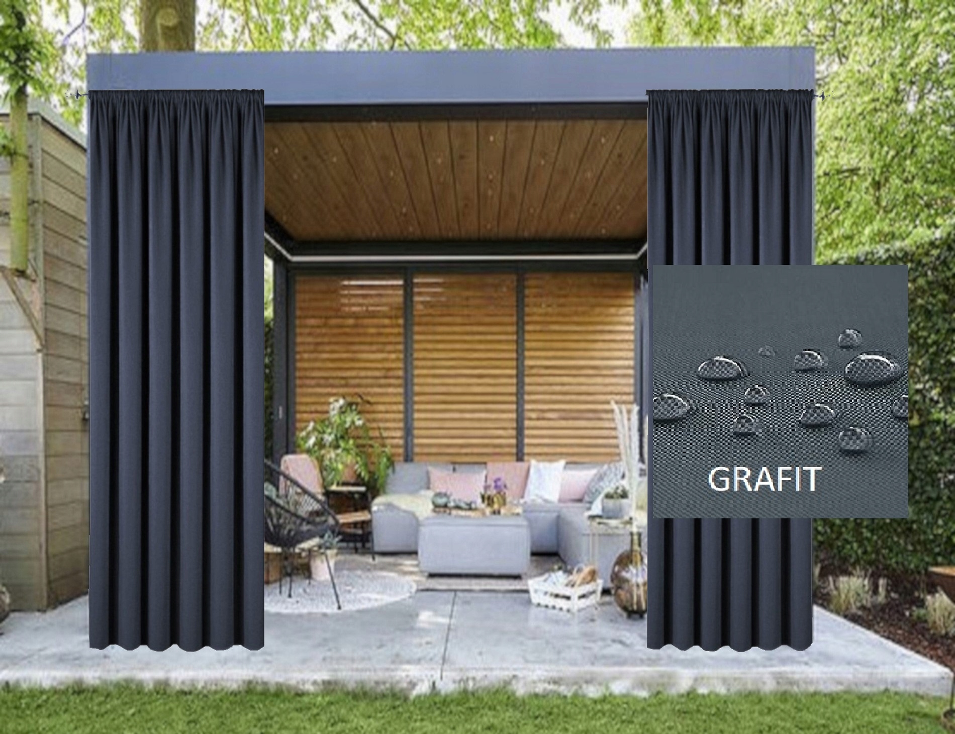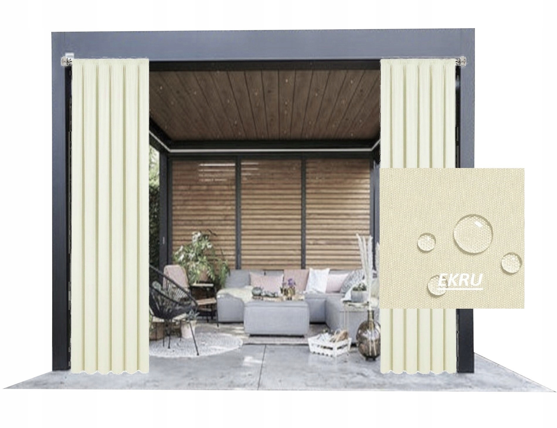 Наші штори додадуть чарівності до вашого місця, щоб відпочити на відкритому повітрі. Зовні наші сидіння та столи більше піддаються бруду. Завдяки водонепроникному майні , штор тераси захистить від дощу. Сторони і дно завіси закінчилися коченням. У верхній частині завіси вшили тунелем з трубчастим настроєм. Можливість повісити штори на 3 способи.