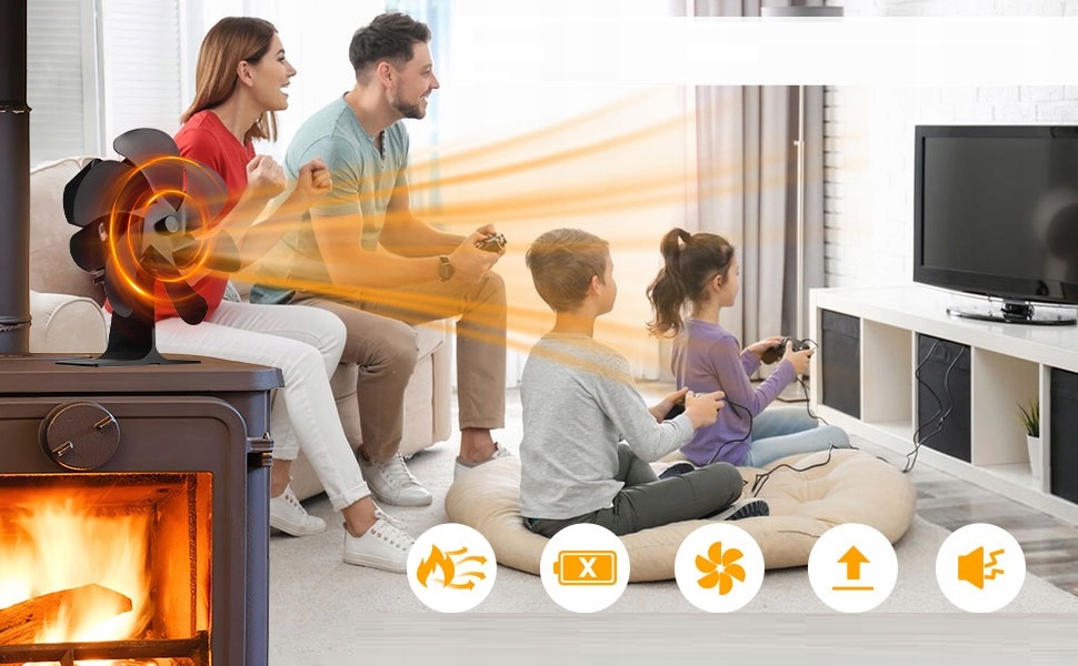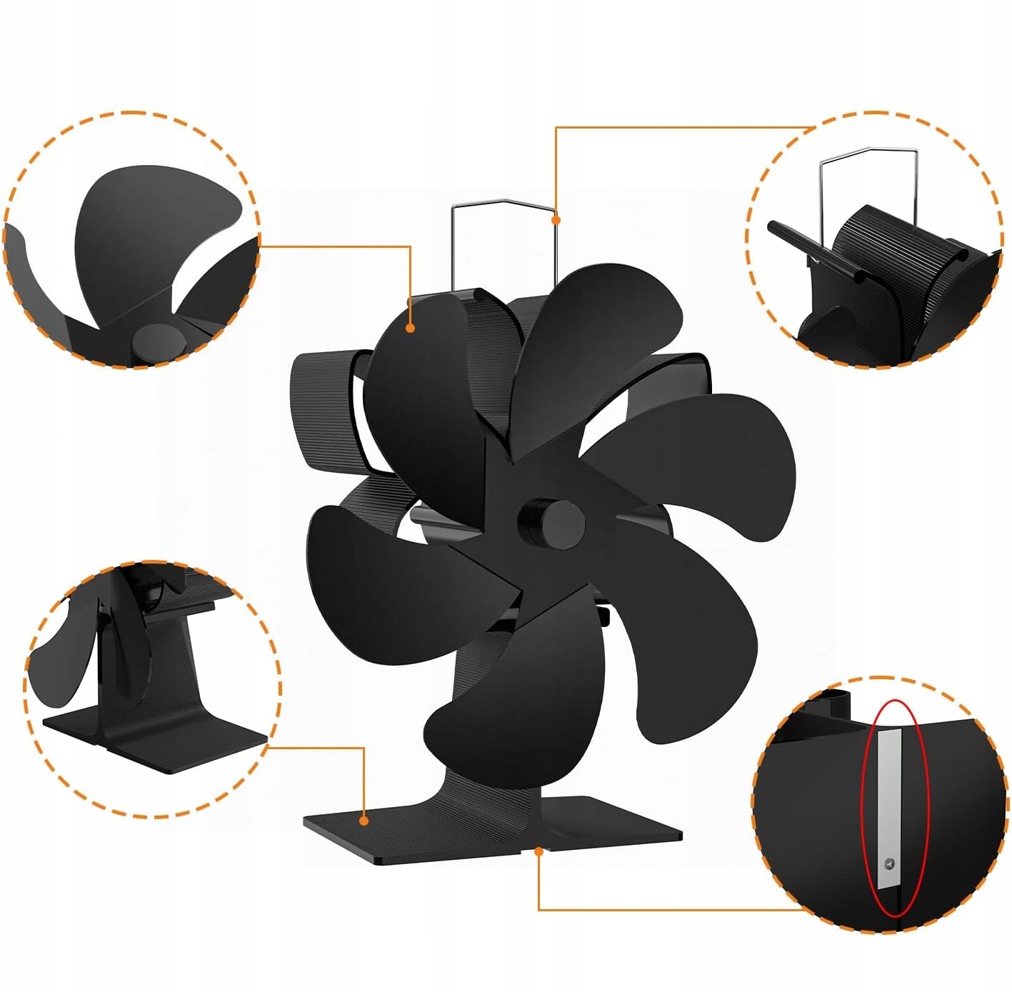не потребує акумулятора або електроенергії. Не вимагає складання; Просто поставте цей маленький вентилятор печі на гладку плоску поверхню тарілки; Вентилятор обертається автоматично, коли температура збільшується. Чим тепліша плита, тим швидше обертаються лопатки. І заощаджуйте 38% на витратах на дерево або паливо.