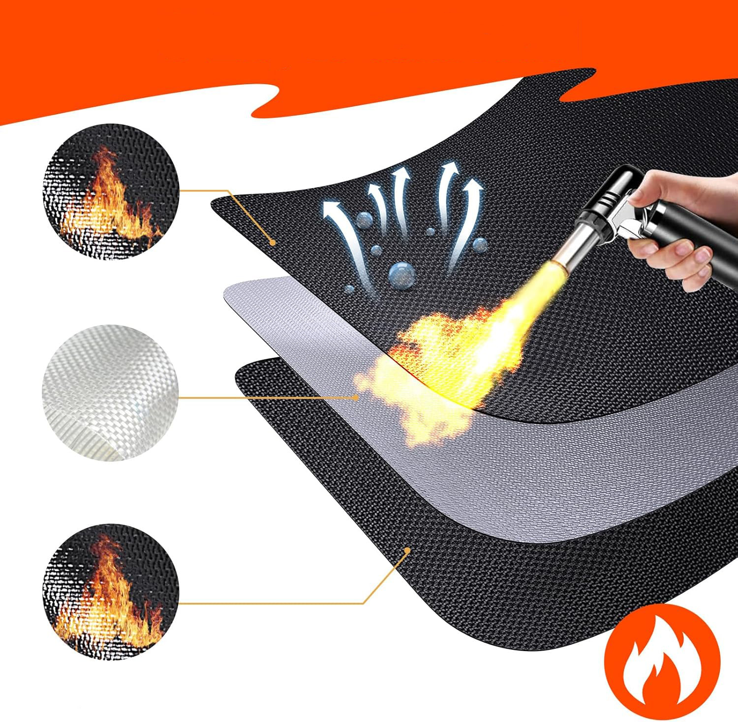🔥Тепло- та вогнестійкість: на відміну від інших повстяних прокладок, наш вогнестійкий килимок виготовлений із високоякісного скловолокна та має спеціальне силіконове покриття з обох сторін. Це не тільки забезпечує виняткову термостійкість до 500°C/982°F, але також забезпечує водонепроникність, протиковзку та стійкість до бруду. Делікатно оброблені краї також забезпечують надійну стабільність і термостійкість.