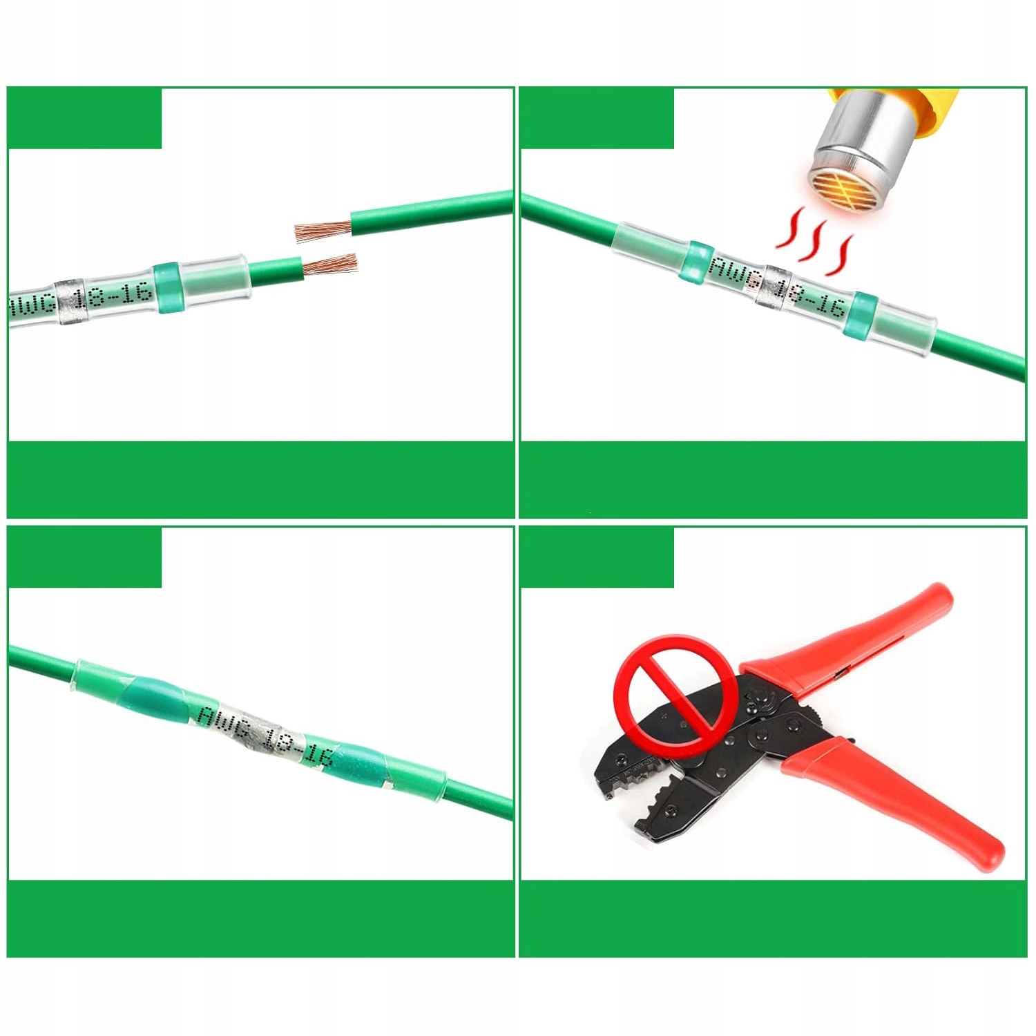 Олово всередині - для досягнення найкращих результатів використовуйте гаряче повітря, доки воно не зменшиться в розмірі, а розчинений клей зникне заповнити прогалини в сорочці. Під час нагрівання з’єднувач постійно обертається, щоб оболонка нагрівалася рівномірно.