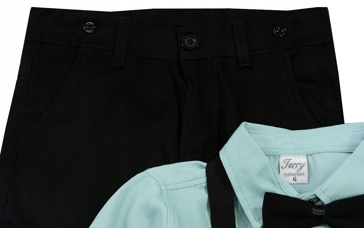 - чорні брюки з двома кишенями спереду, 2 кишенями ззаду /регулюється по талії гумкою на ґудзику/