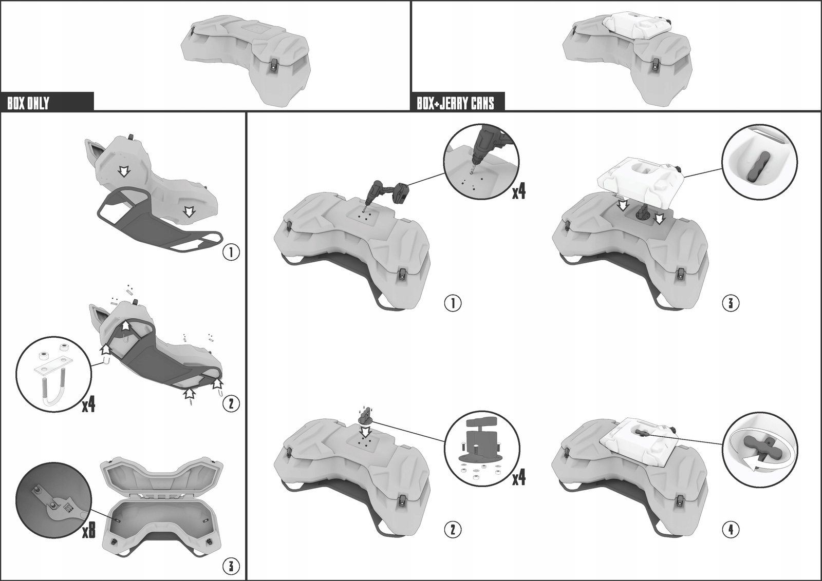 При розробці функції заднього багажника були належним чином враховані, щоб забезпечити ідеальну інтеграцію багажника з багажником. Тому він не виступає за межами квадроцикла і не впливає на комфорт водія. Стовбуй встановлений з кіберантами, укладеними U, що гарантує надійне обслуговування на кожній рамці, виготовлених з металевих профілів. Високоякісний замок з металевою ключем зберігає кришку в безпечному та закритому положенні. Прокладка між кришкою та основою захищає ваші речі від бруду, пилу та води навіть у найскладніших умовах.