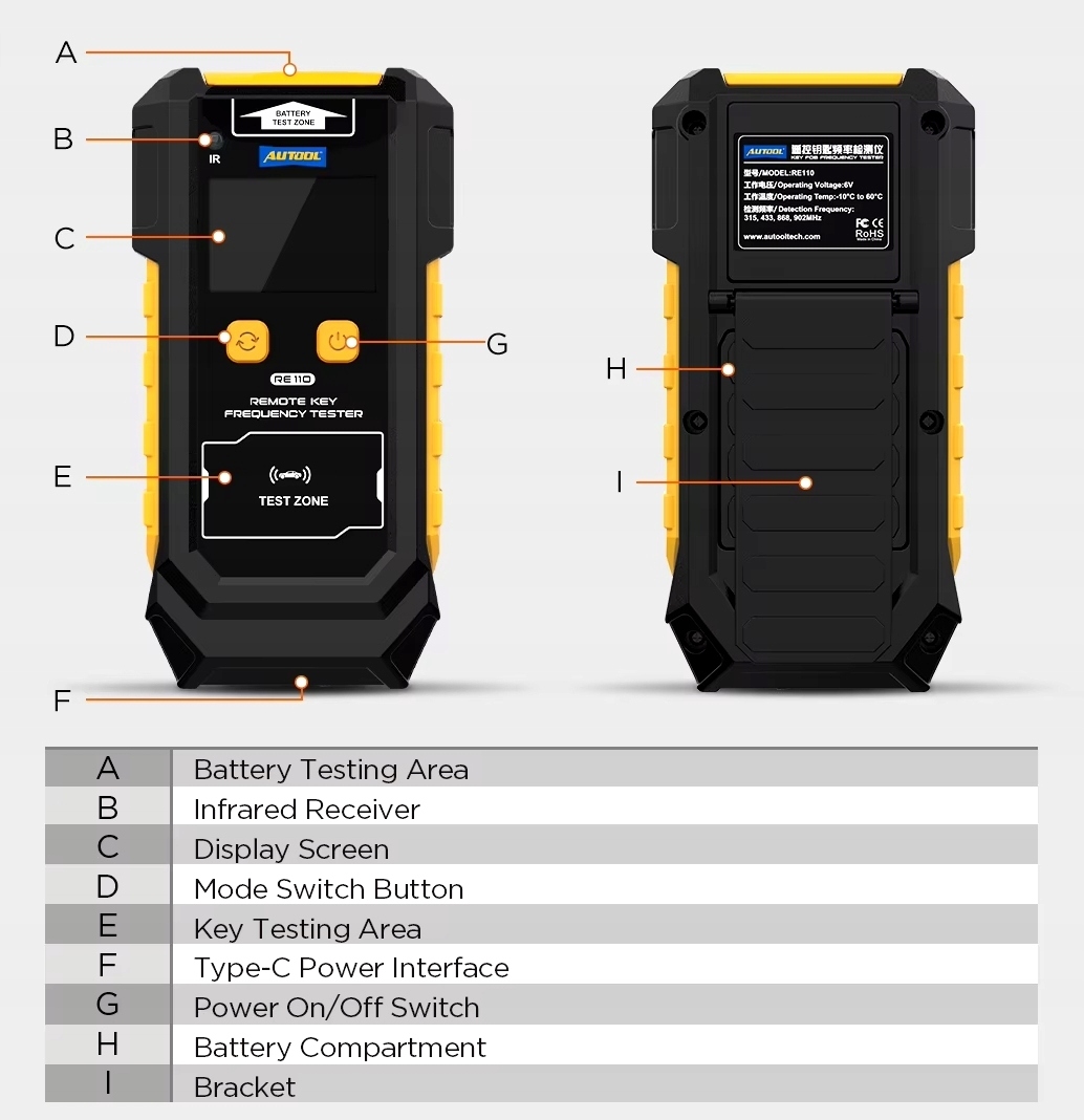 тестер віддаленої частоти, підтримуючи виявлення 315/433/868/902 МГц/інфрачервоні клавіші, сигнал IMMO -анти -кадрів, виявлення інфрачервоного сигналу . Підходить CR2025/CR2032: вам не потрібно тримати пристрій під час використання, він може бути розміщений безпосередньо на робочому столі, який є зручним і економить роботу, а кронштейн може бути поданий для збереження місця. >