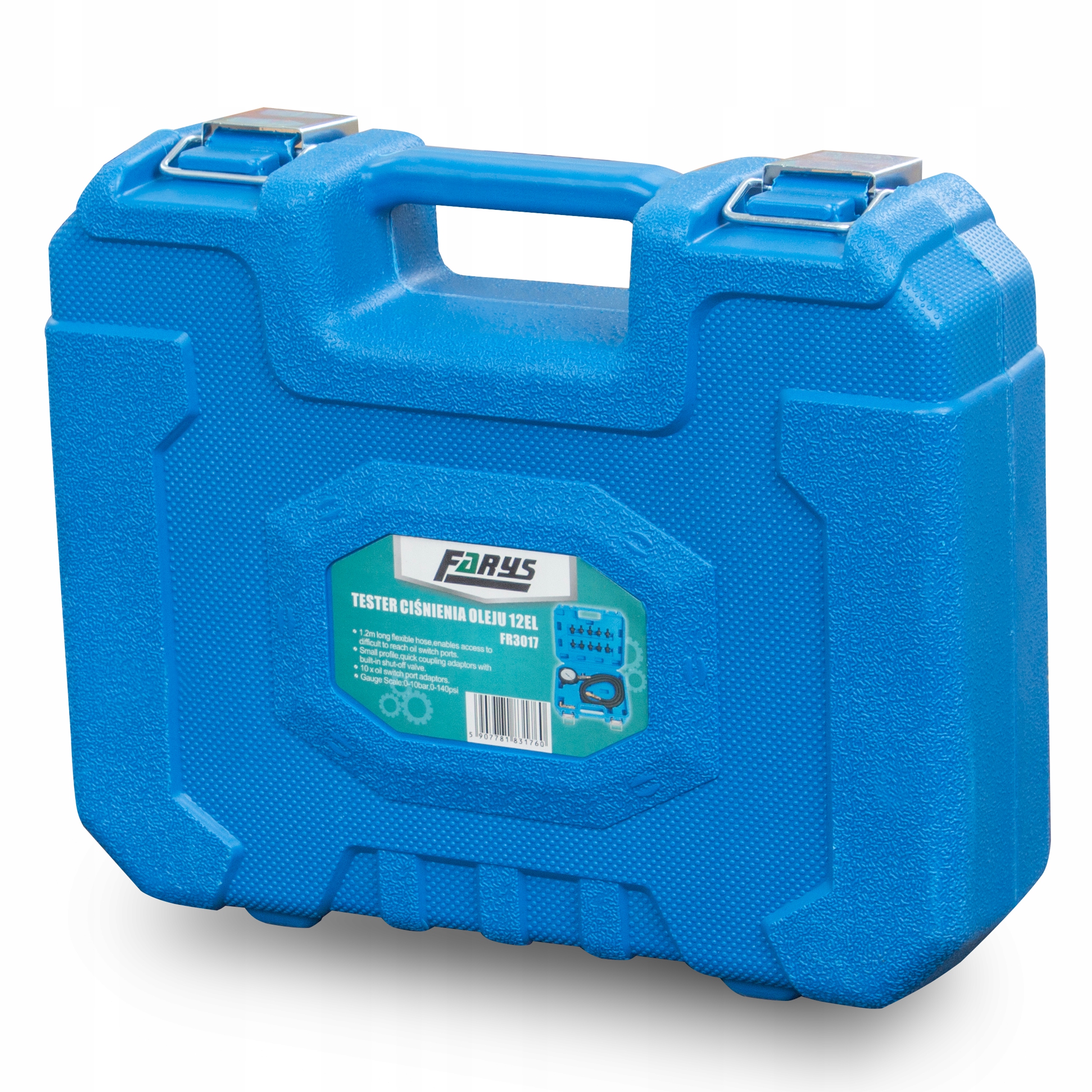 Набір оснащений датчиком тиску з гнучким кабелем, 10 адаптерами з додатковими гумовими ущільнювачами, адаптером коліна. зберігання, але також переміщення набору.